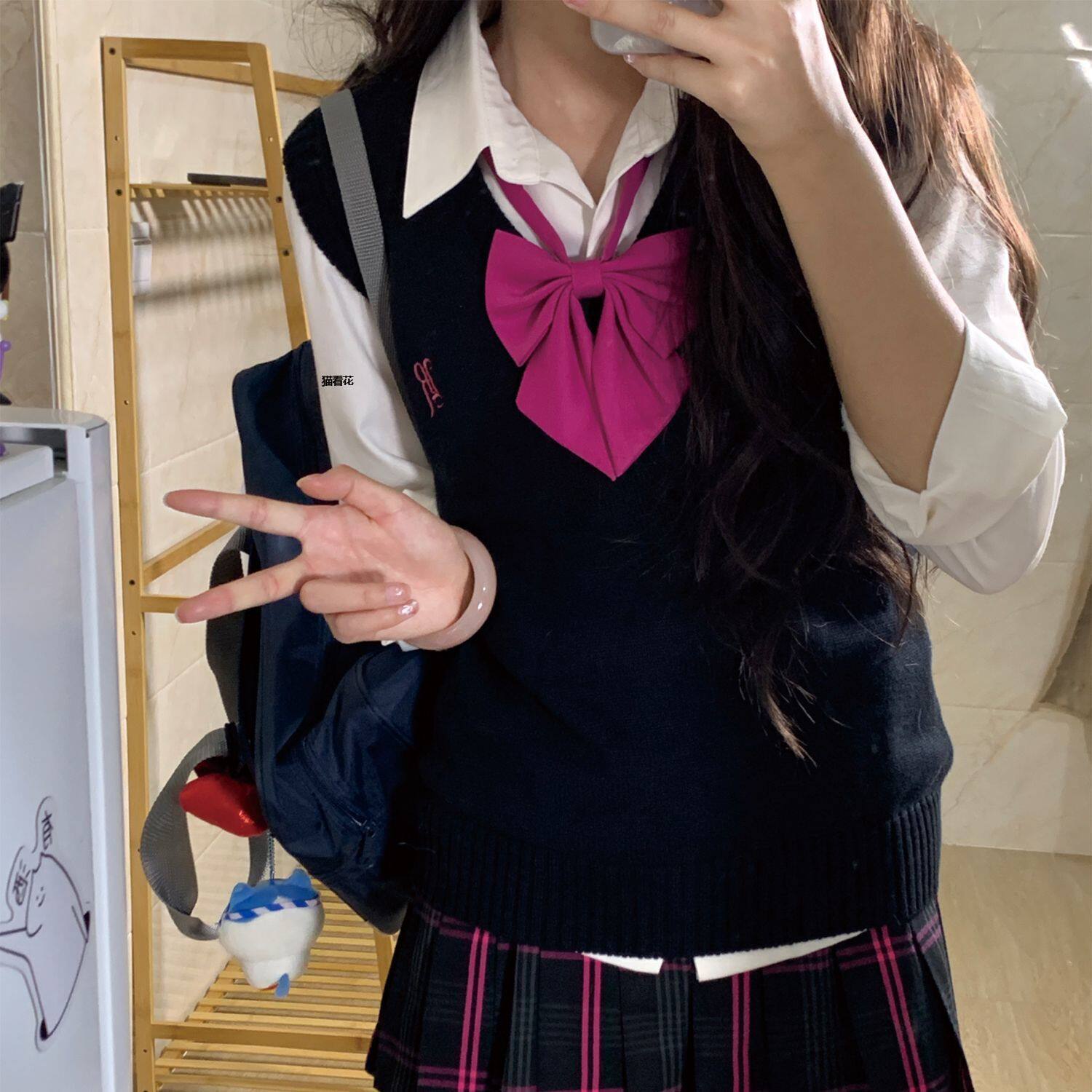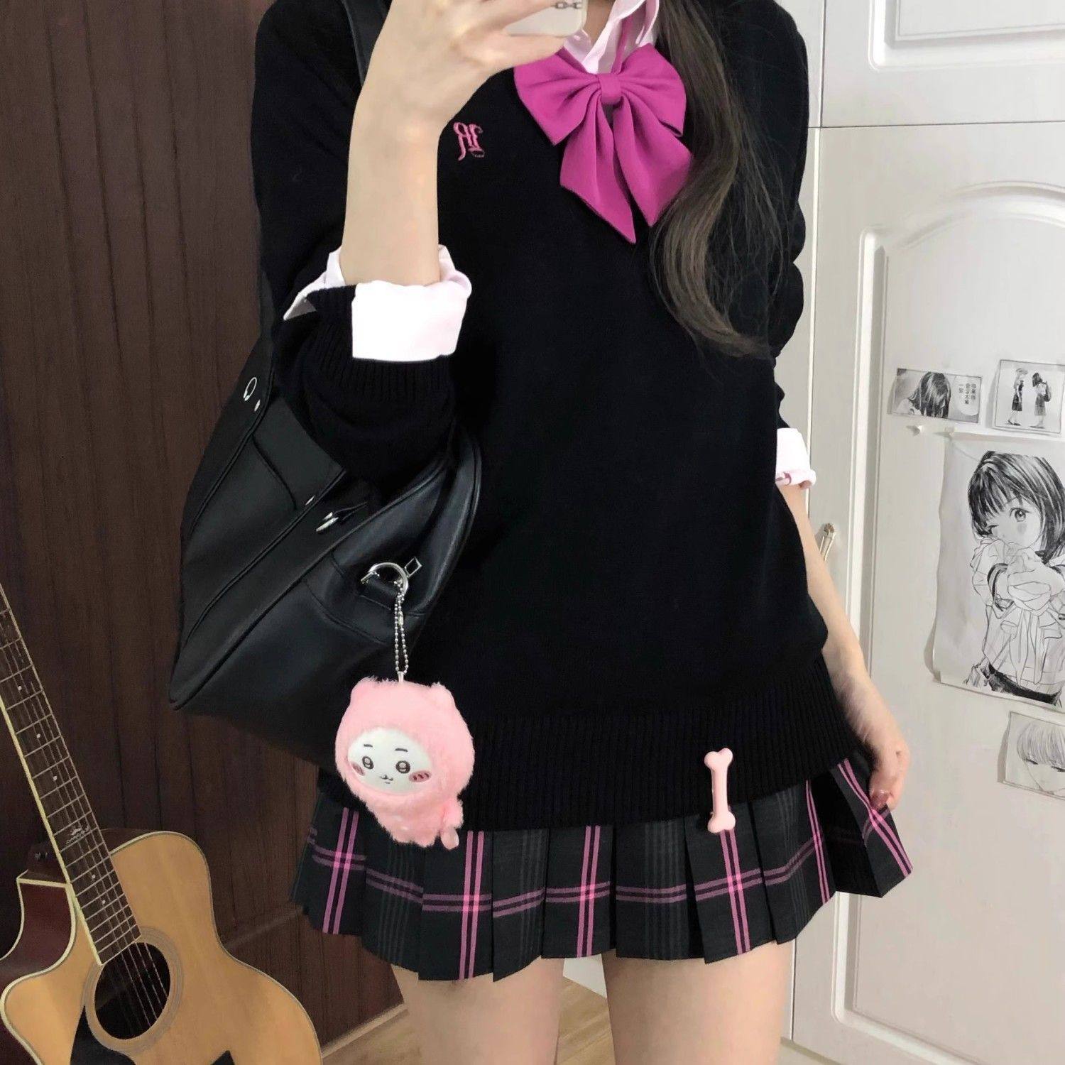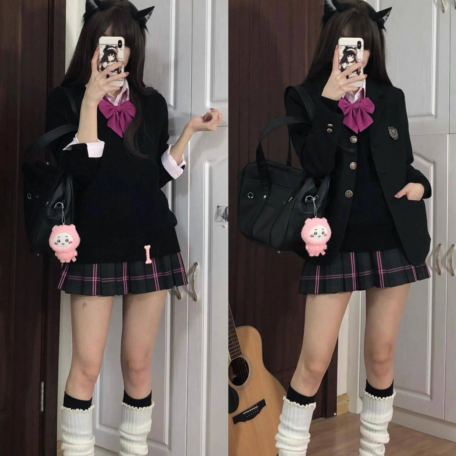 黑粉jk格裙德兰制服校供感百搭学生学院百褶裙半身裙短裙芭比女