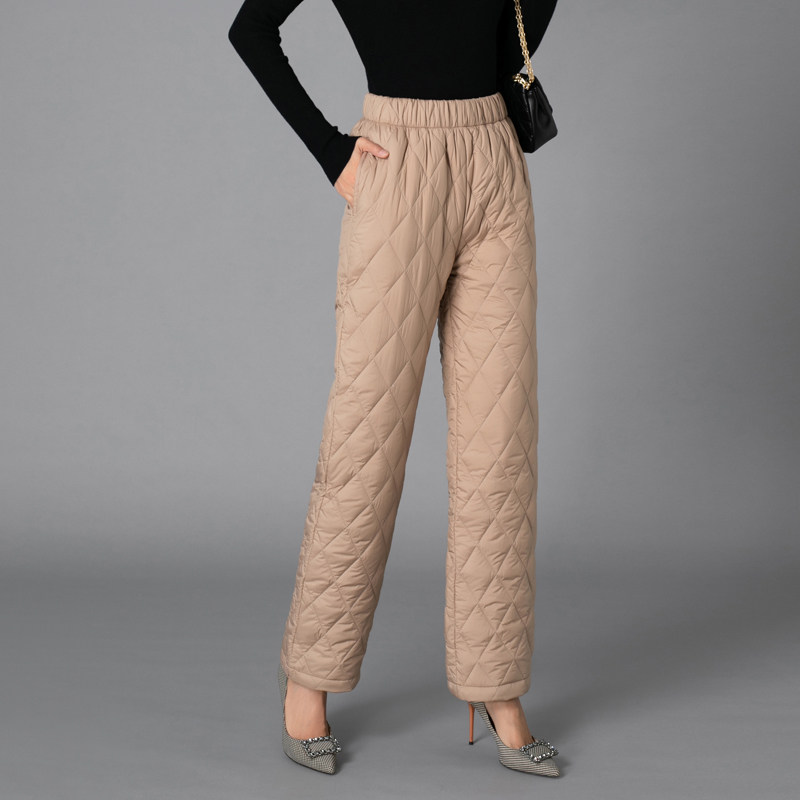 高腰加厚保暖外穿显瘦大码 女士2025冬款 休闲直筒羽绒棉裤 阔腿棉裤