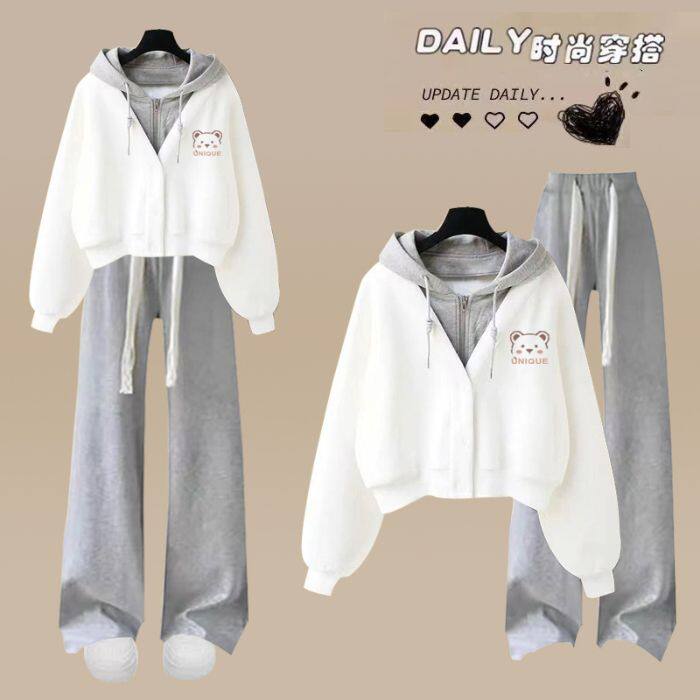 两件套 巨好看休闲运动套装 韩版 少女秋装 假两件连帽卫衣阔腿裤 时尚