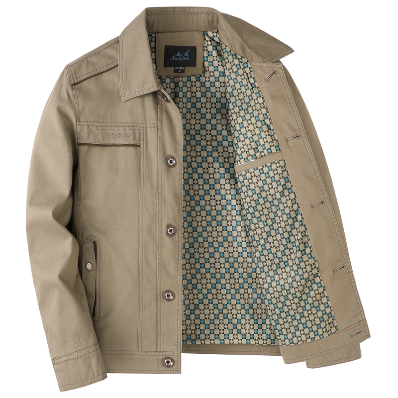 爸爸纯棉外套春秋季 翻领纽扣上衣中老年人男士 中年男装 夹克衫 秋装