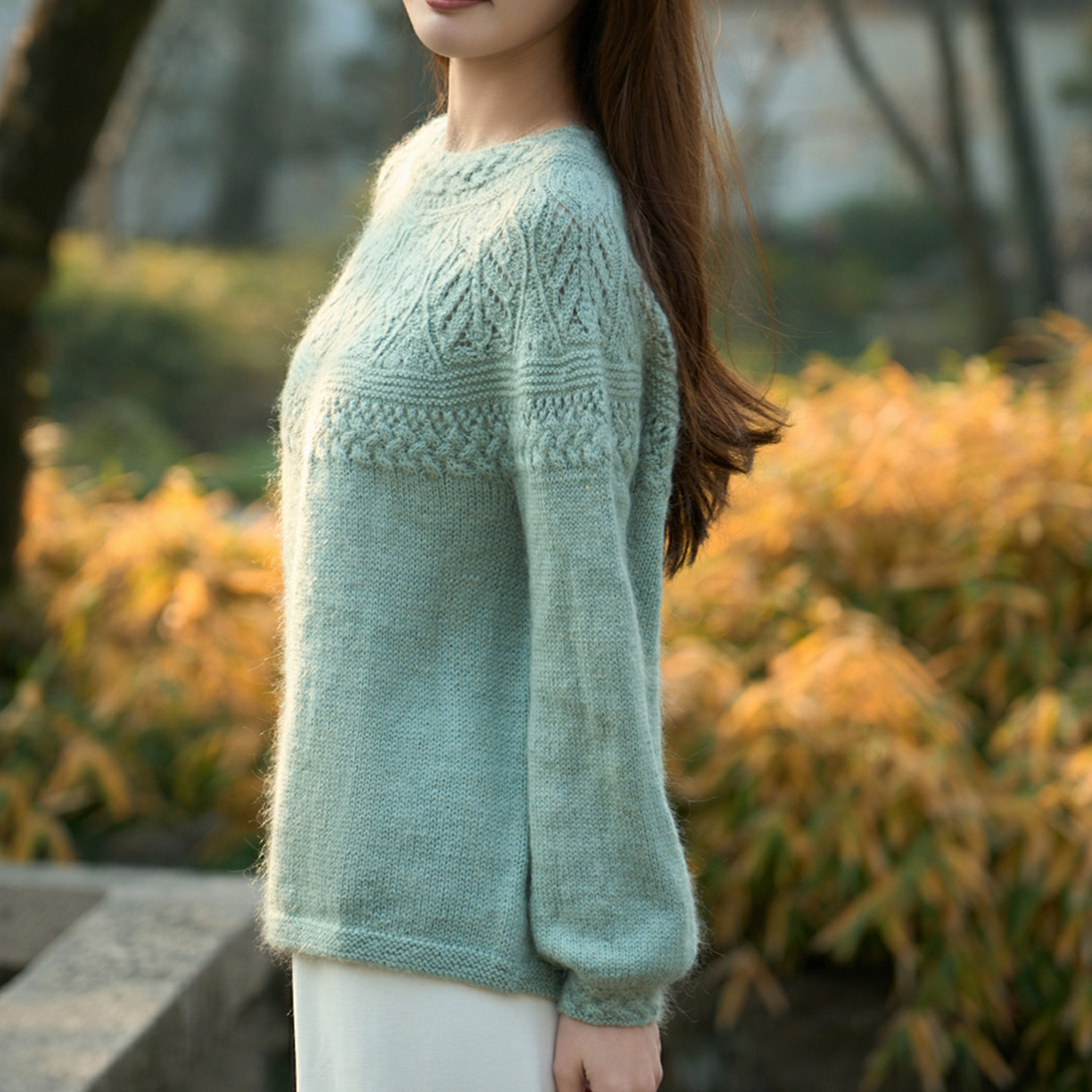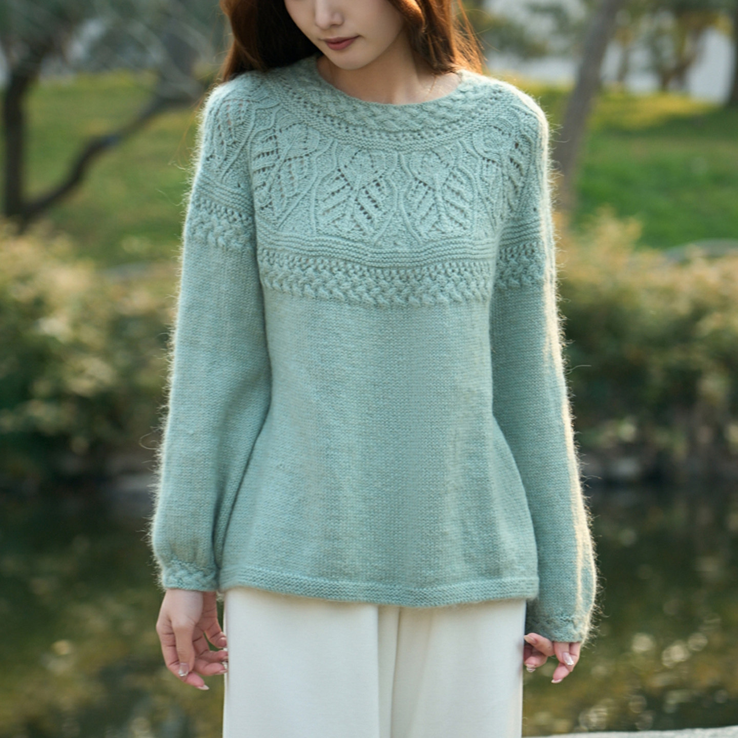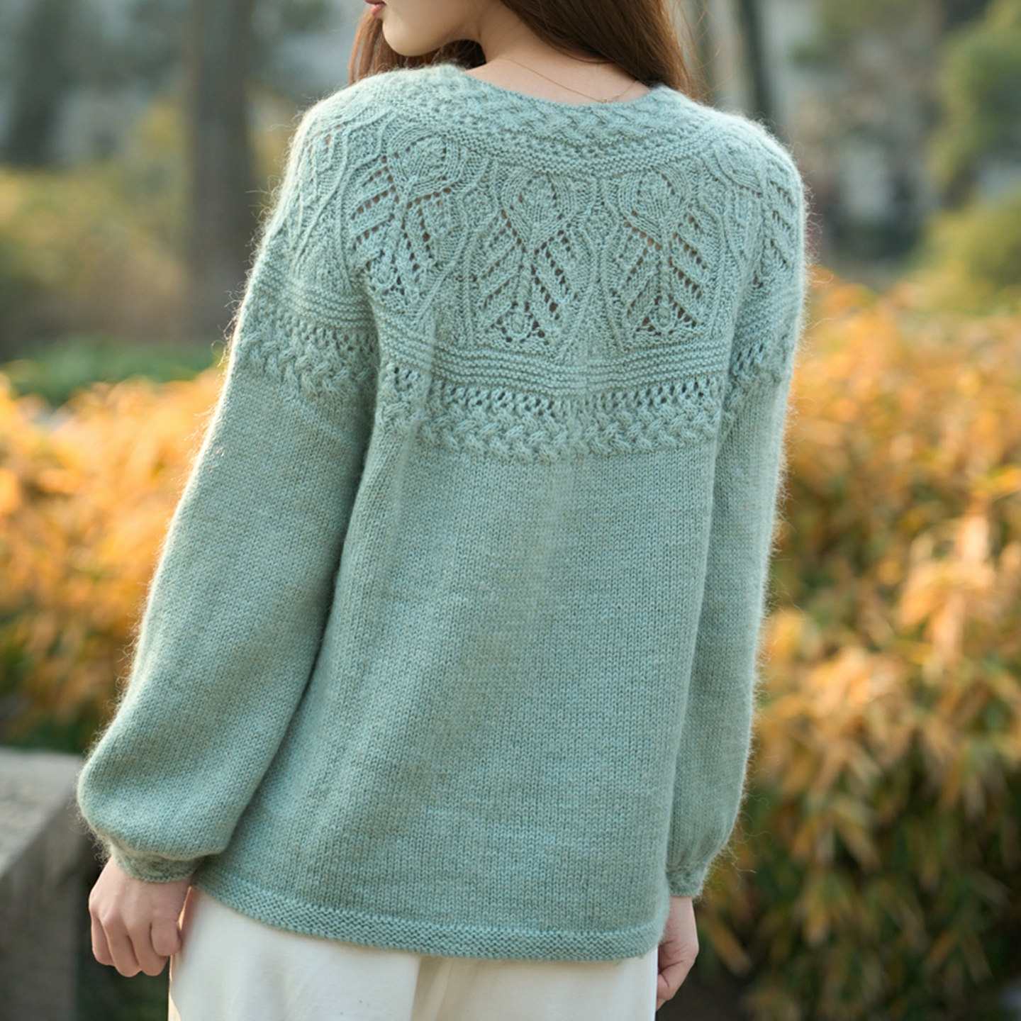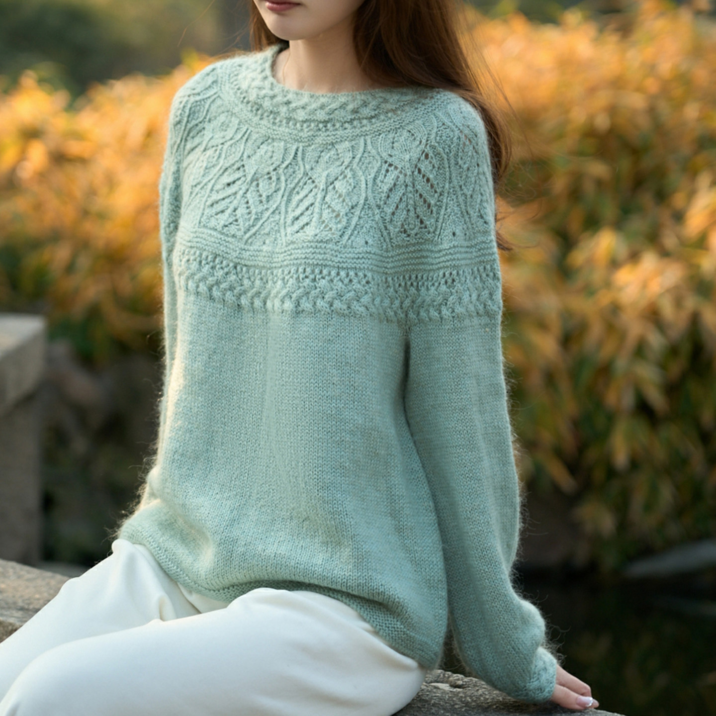 编织人生378花芷 育克套头毛衣材料包 手工编织DIY羊毛马海毛线