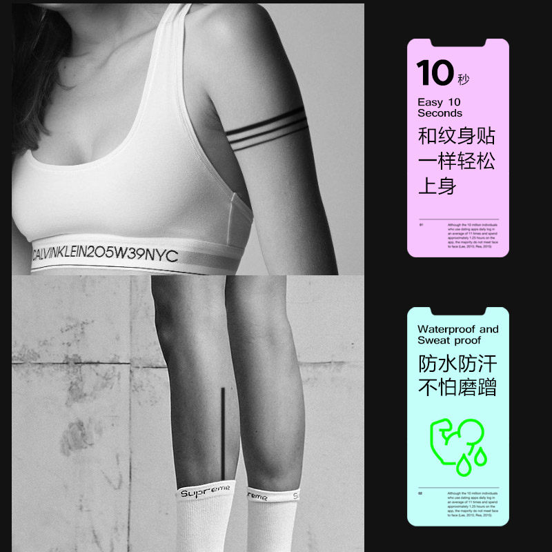 直线条保持久草本纹身贴男女果汁防水持久极简风简约手臂环 再变