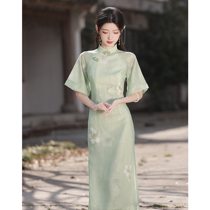 进口倒大袖 日常连衣 旗袍2025年少女夏季 平时可穿粉色清新新中式