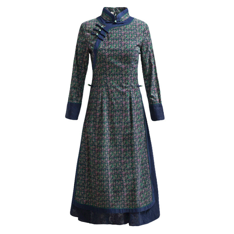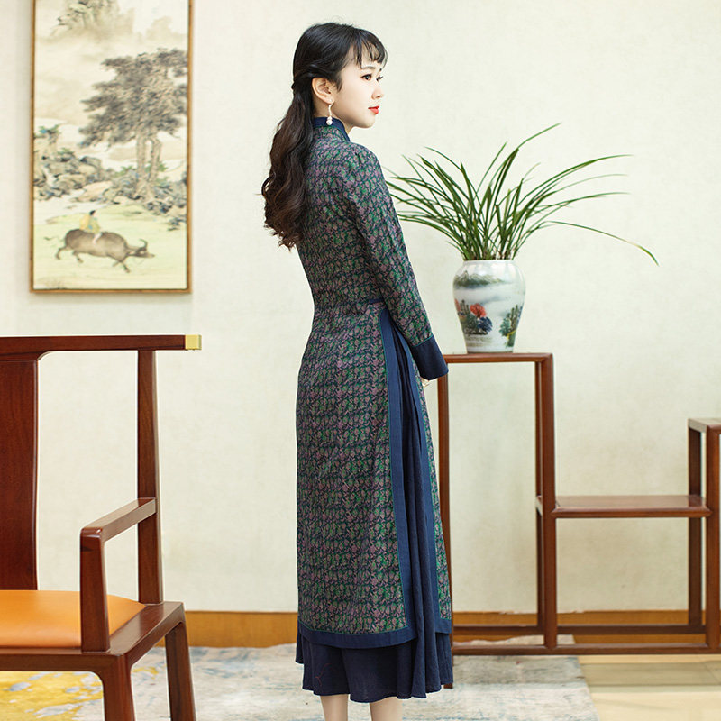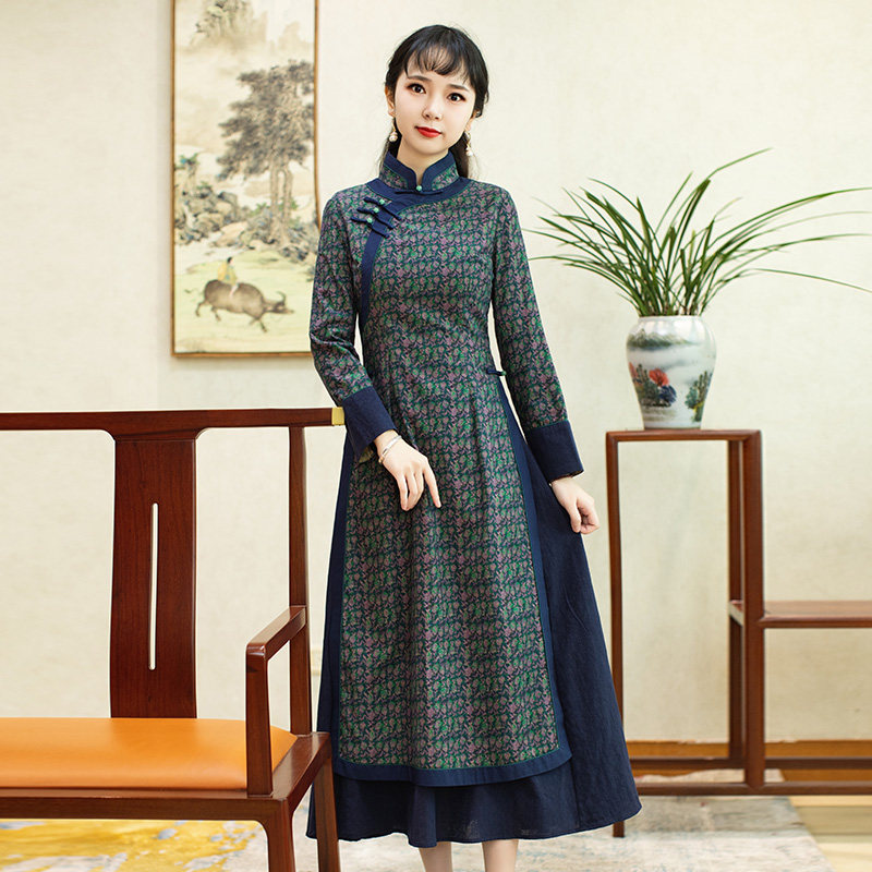 如意风越南奥黛棉旗袍改良连衣裙女长袖 年轻款 复古民国中国风女装