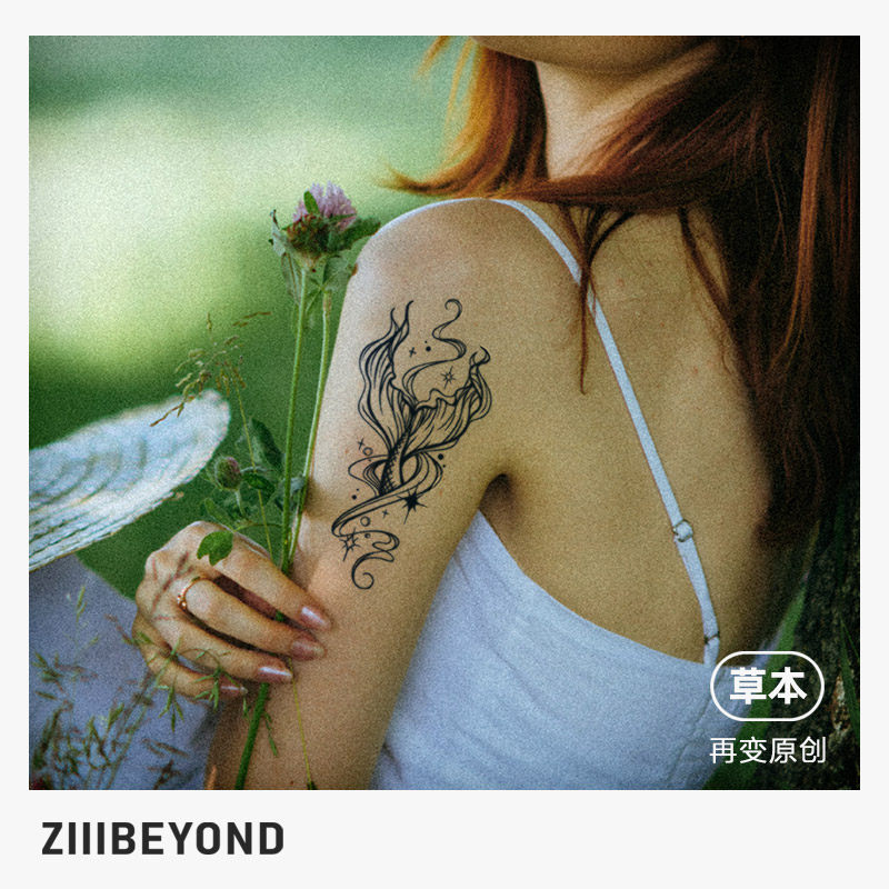 精灵鱼尾保持久美人鱼草本纹身贴纸防水女持久性感果汁后背 再变