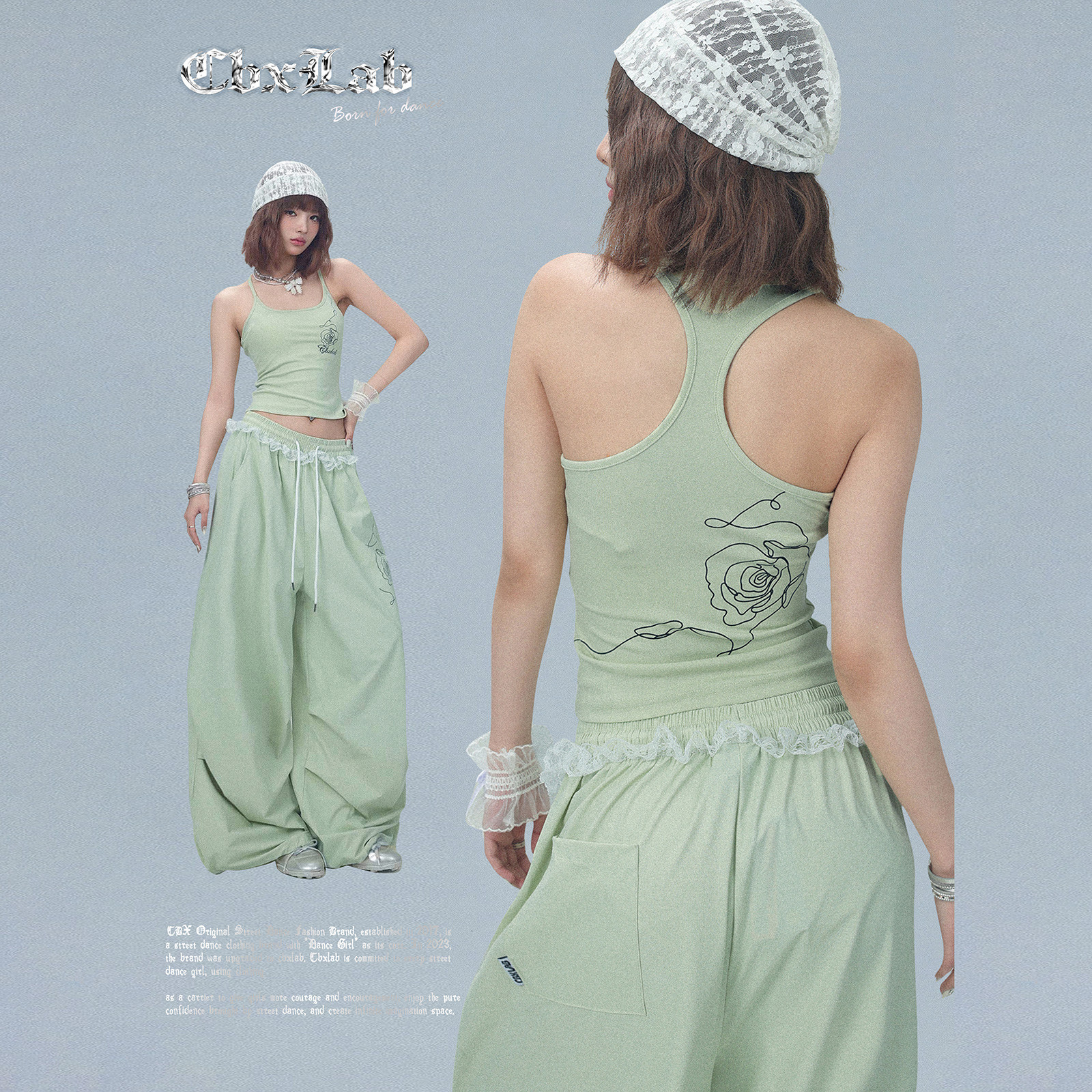 潮 辣妹爵士套装 静音速干 针织柔软吊带嘻哈运动裤 CBXLAB街舞潮牌