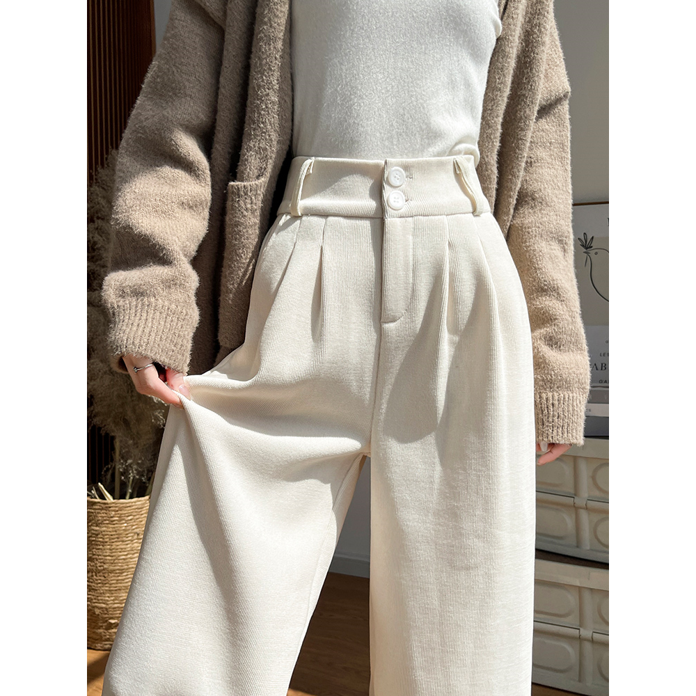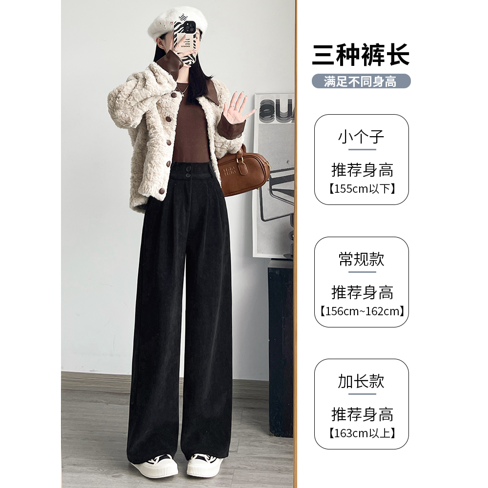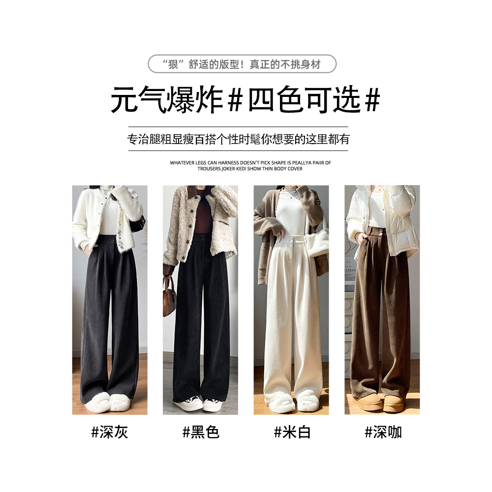 灯芯绒裤 2025新款 女秋冬季 子休闲加绒加厚雪尼尔阔腿裤 灰色西装 裤