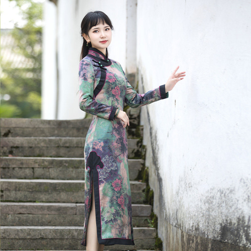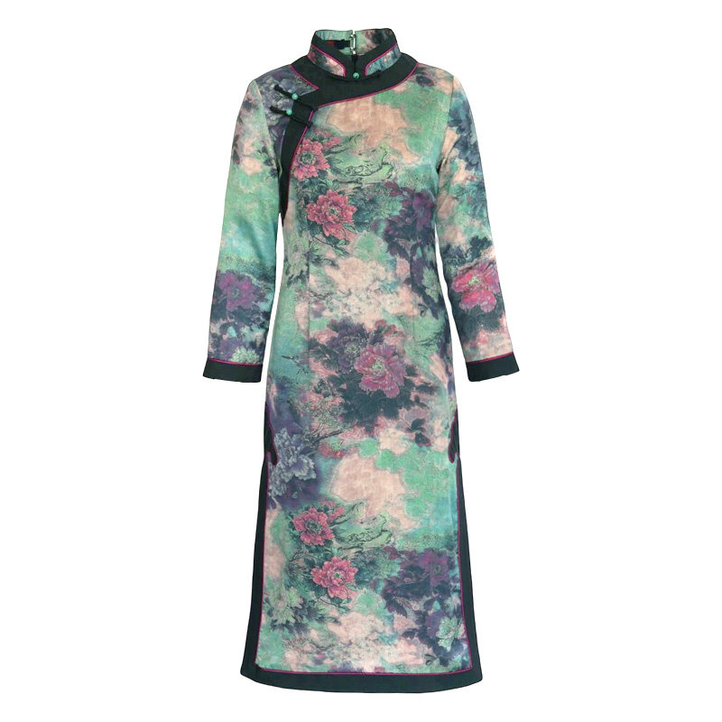 复古时尚 加厚保暖妈妈装 盘扣中国风女装 如意风改良旗袍裙女冬季