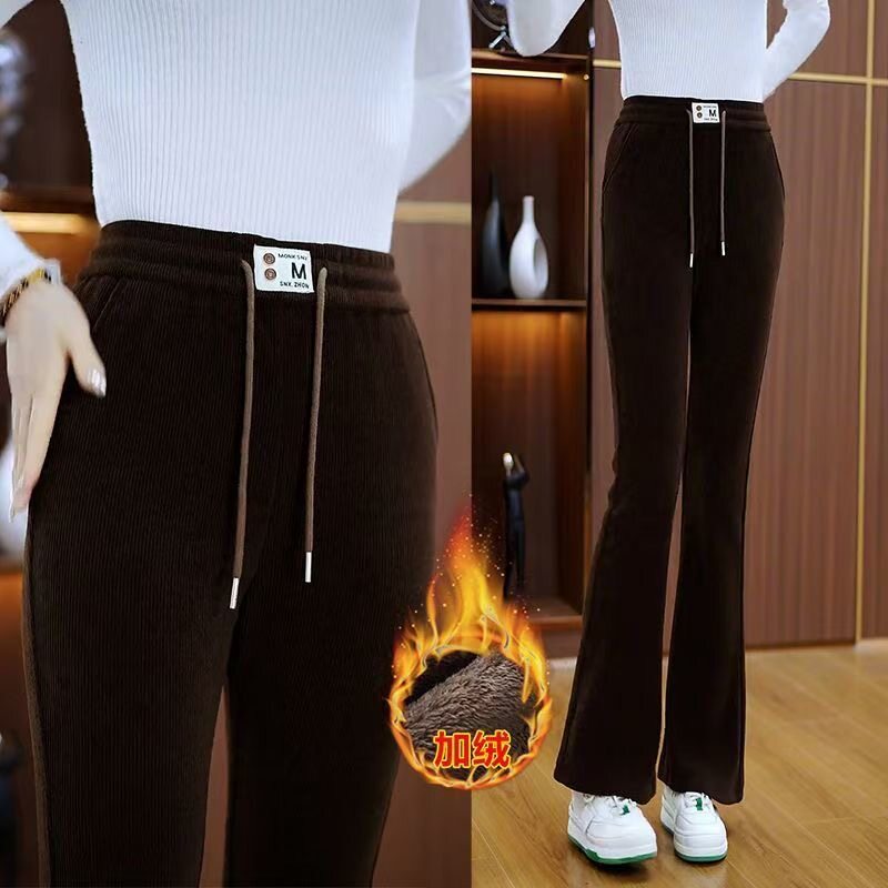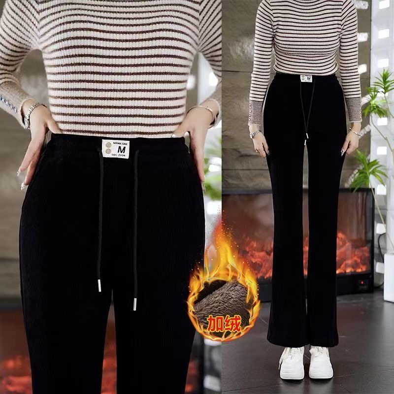 加绒加厚微喇叭裤 宽松休闲长裤 女秋冬新款 外穿保暖棉裤 雪尼尔大码