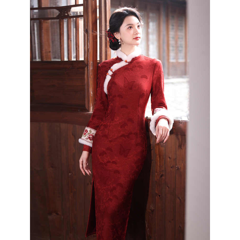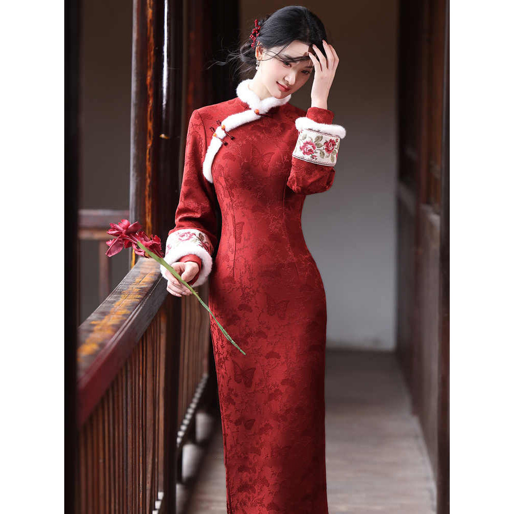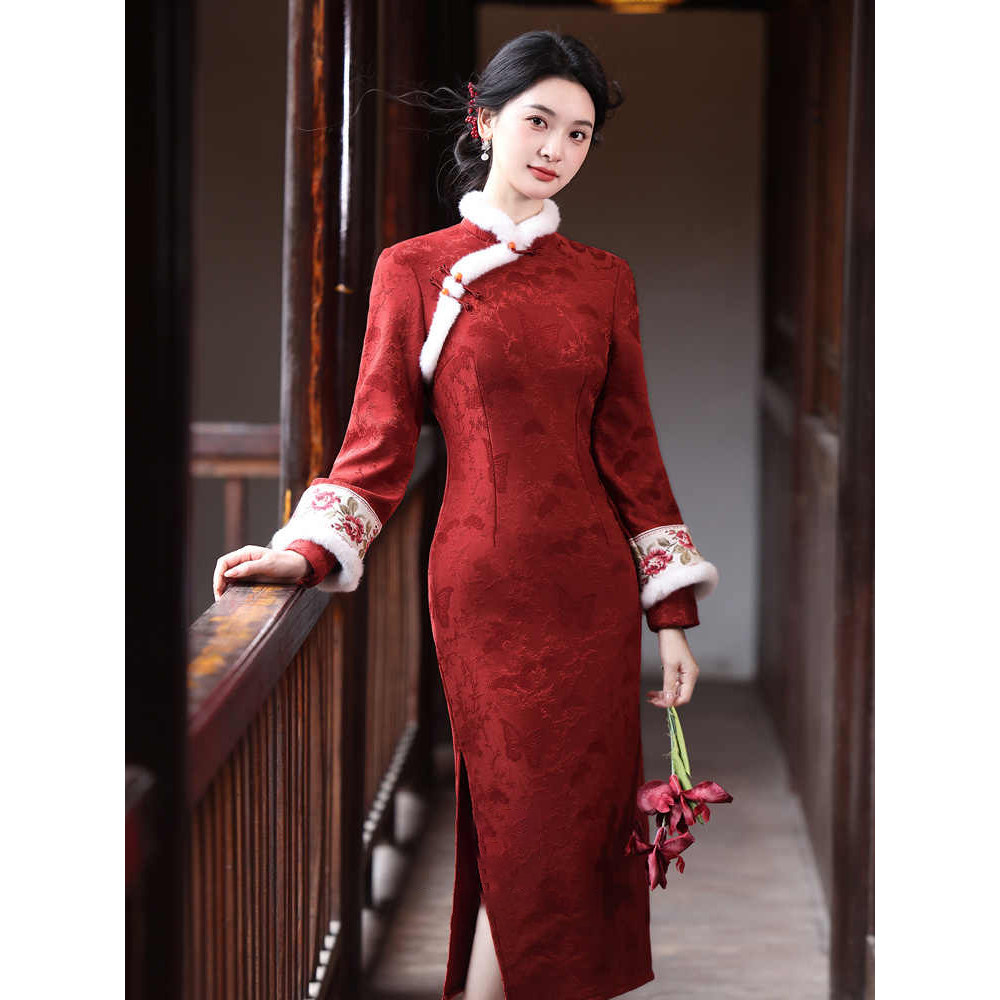 服 新中式 2026年新款 保暖订婚敬酒服拜年修身 加绒加厚红色旗袍冬装