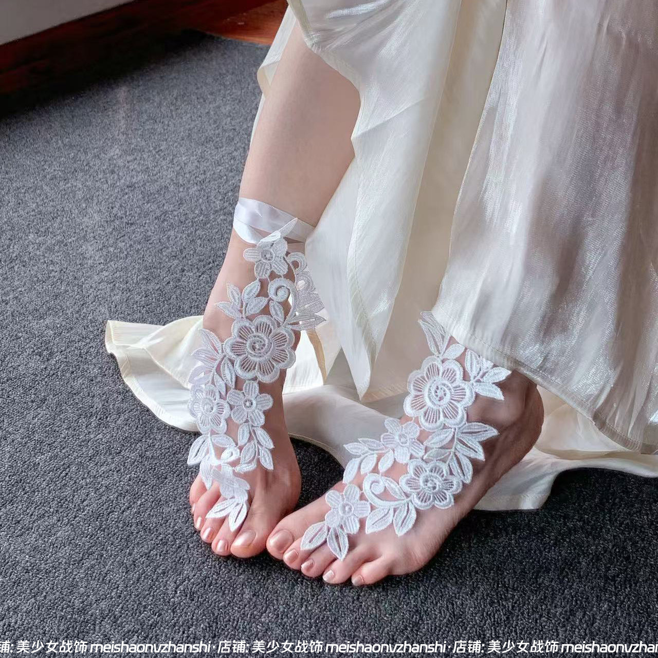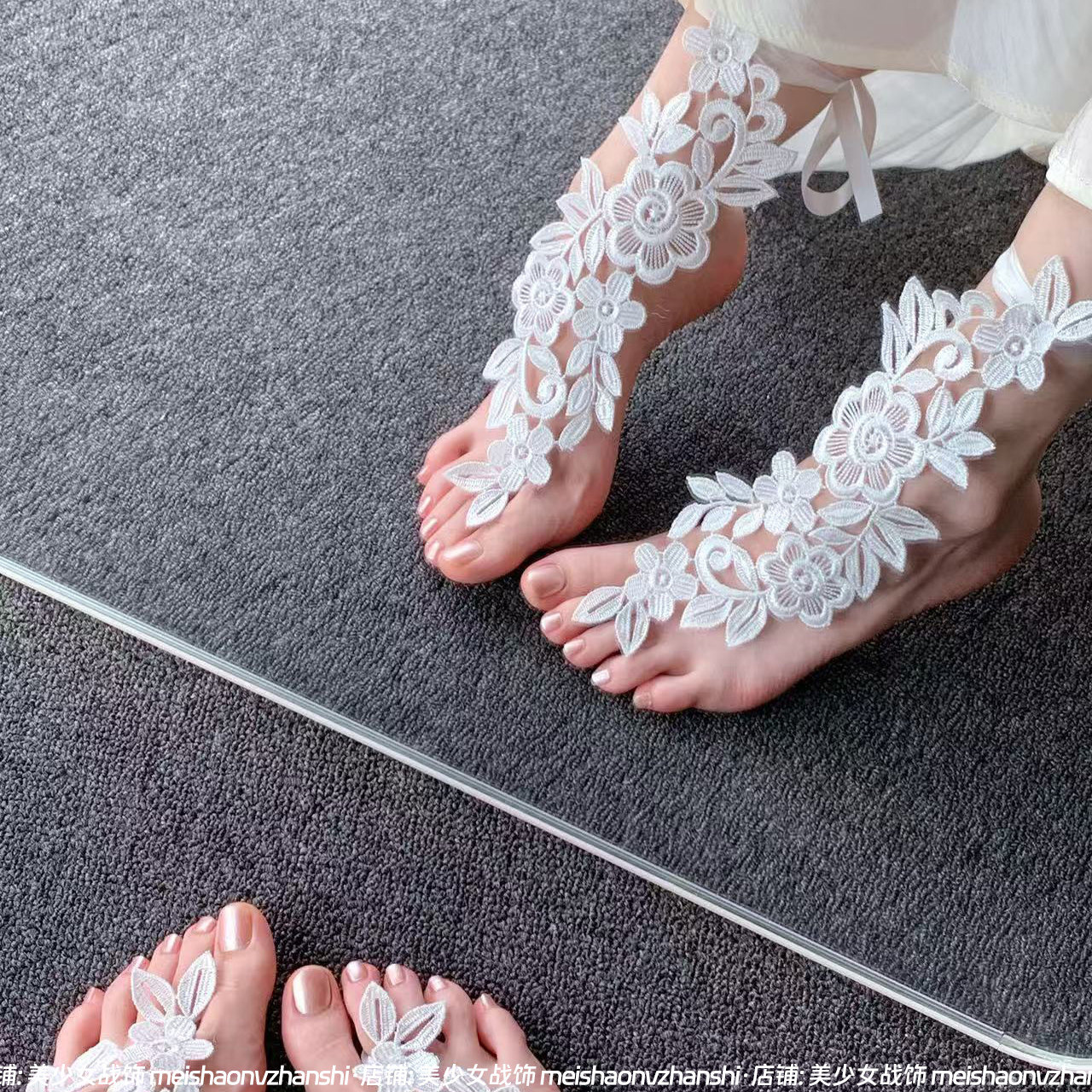 纯欲足饰 性感镂空黑色蕾丝脚链女脚脖装 饰拍照写真绑带腿环