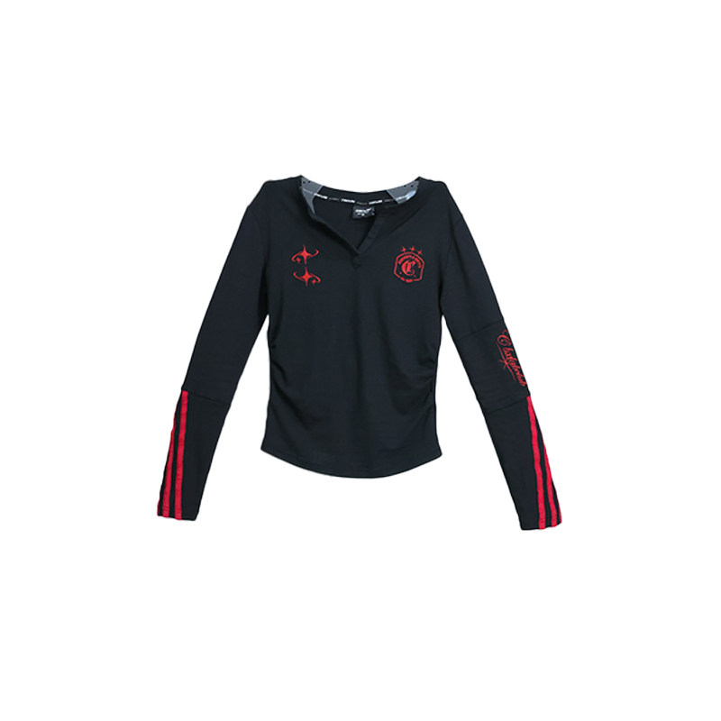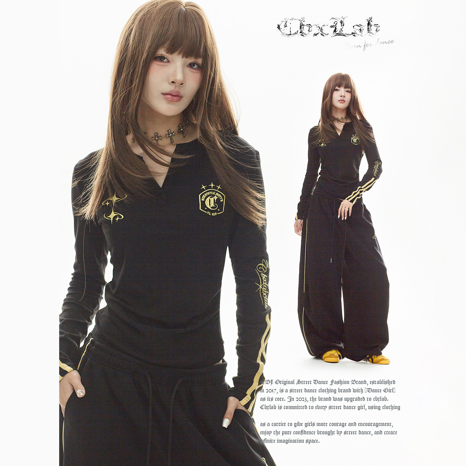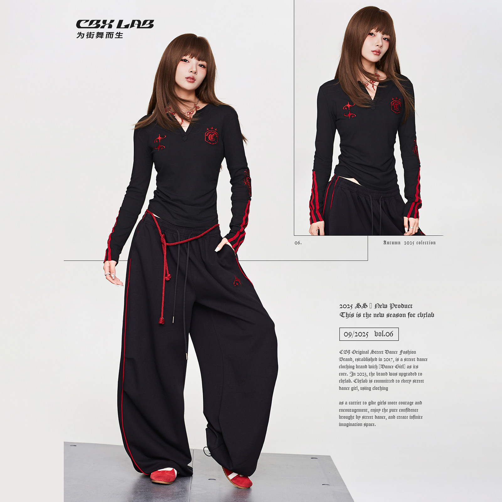 CBXLAB街舞潮牌红星夹线辣妹秋冬套装 个性 V领修身 运动裤 显瘦长袖