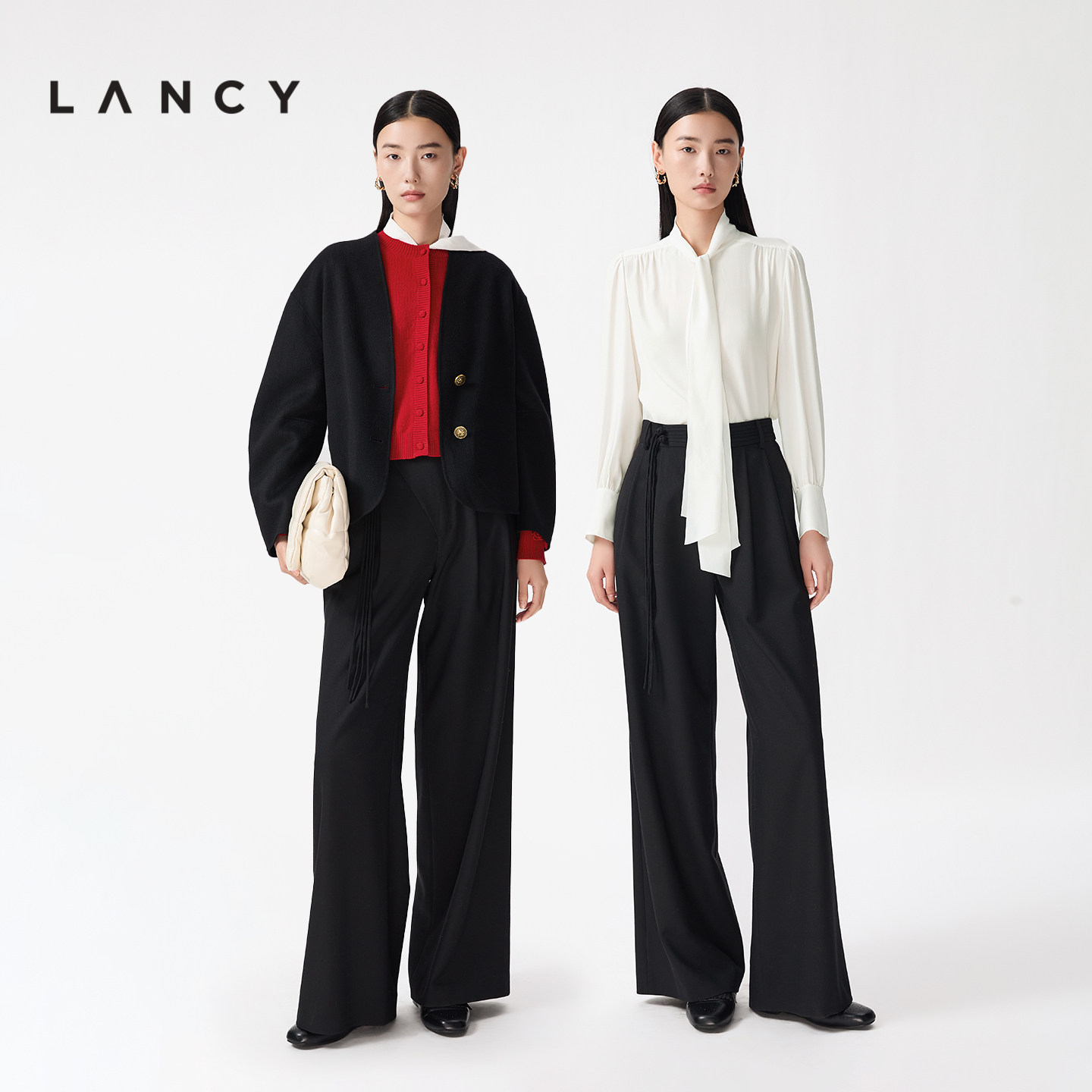 纯羊毛高腰阔腿西裤 LANCY 宋佳同款 朗姿2026春新款 金玉满棠