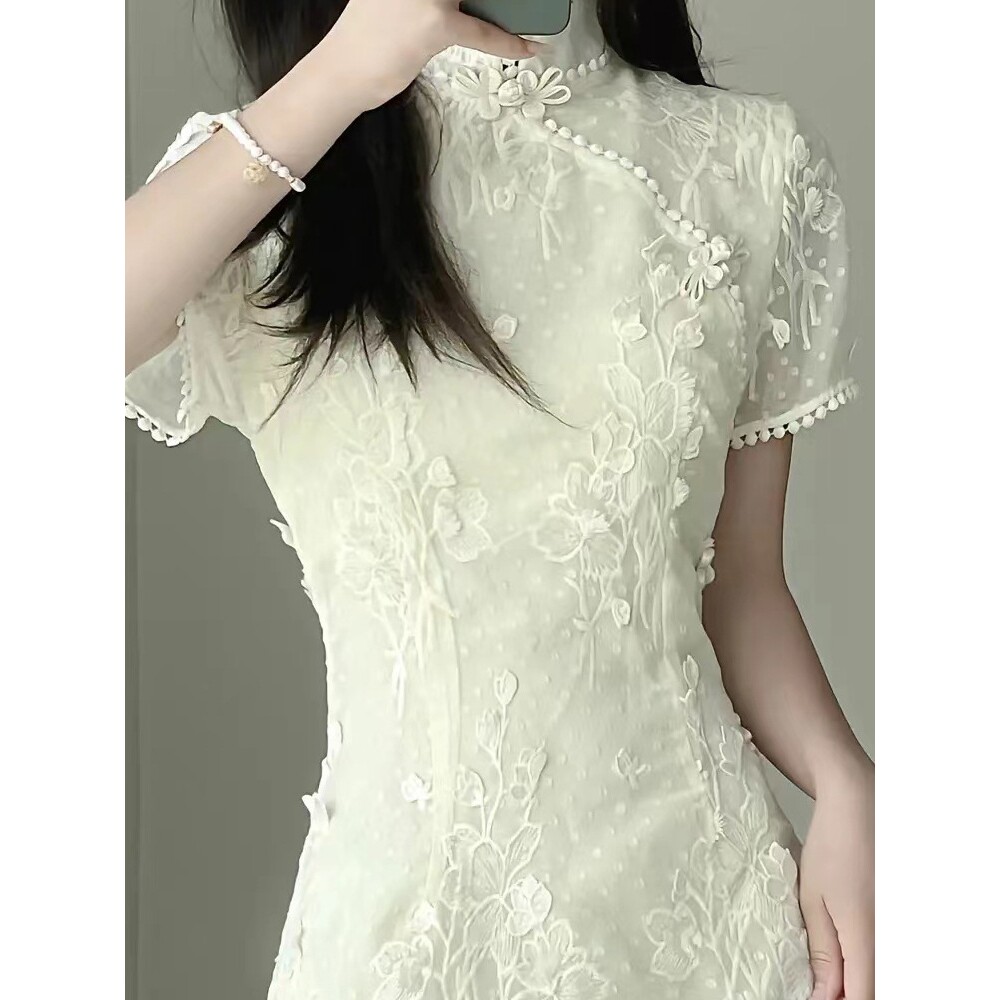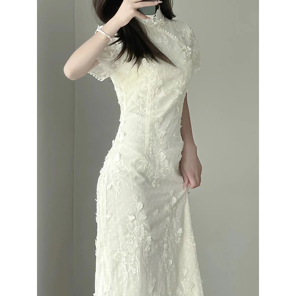进口2025新中式 少女改良旗袍连衣长裙夏 复古民国风小洋装 年轻款