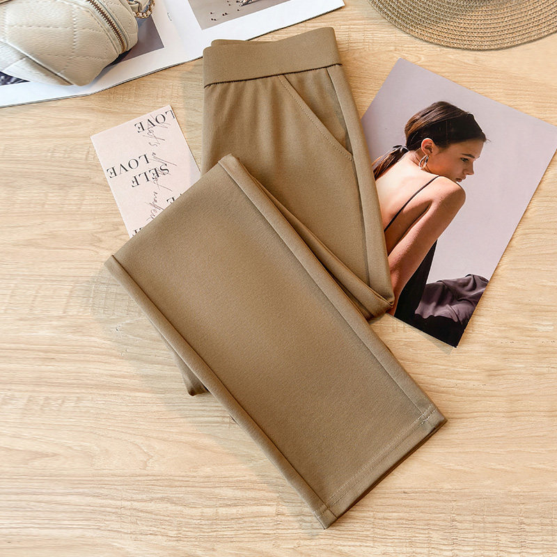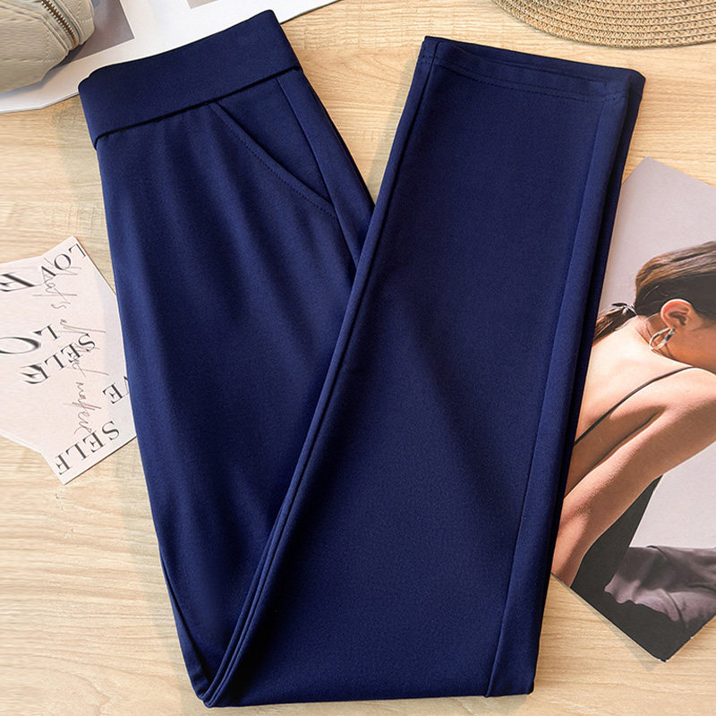 啄木鸟深蓝色直筒裤 职业气质显瘦西装 女秋季 职业裤 高腰弹力大码