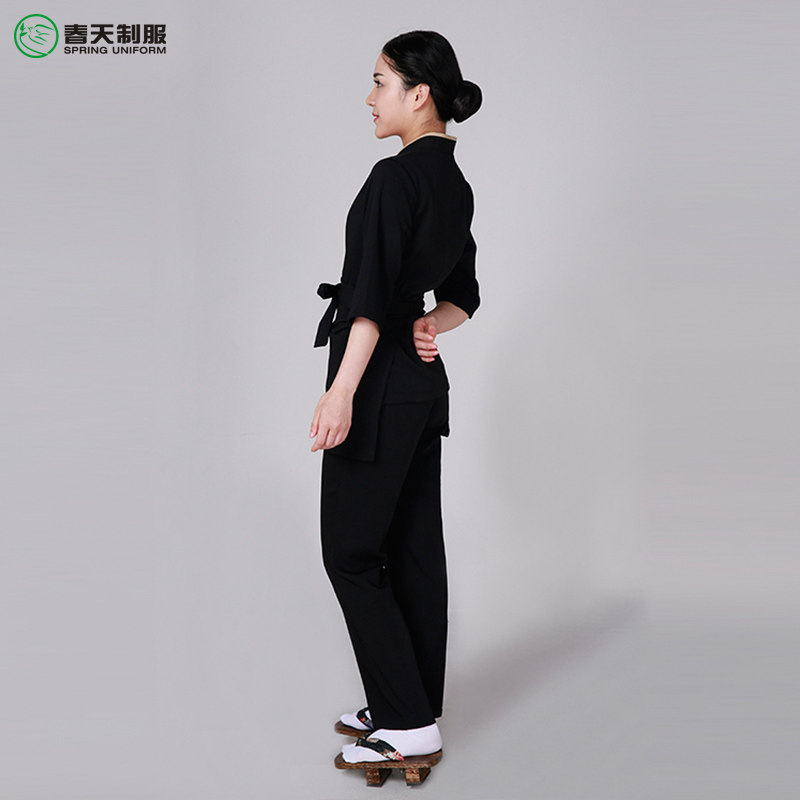春季 日本料理店居酒屋烤肉店日式 黑色男女服务员工作服厨师服上衣