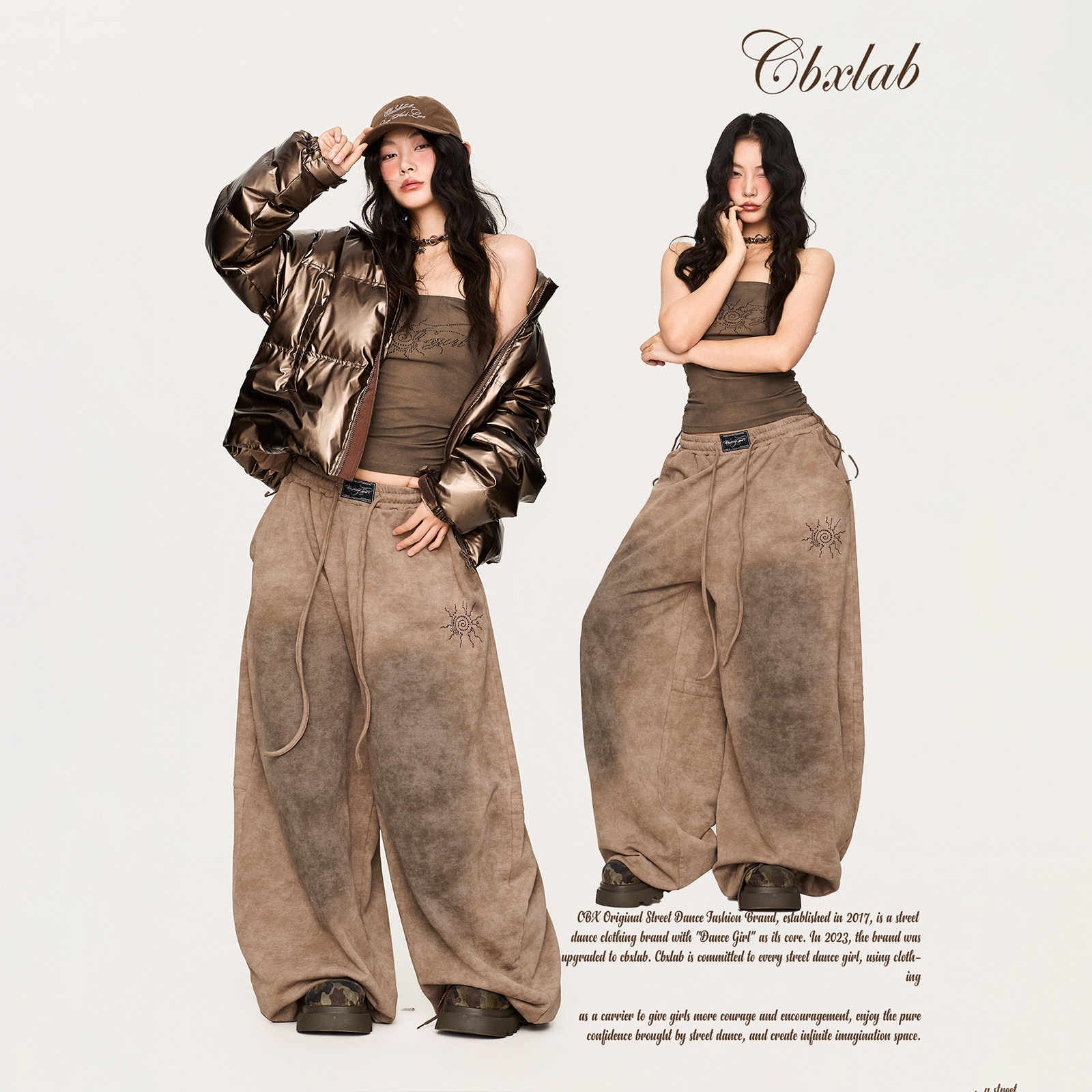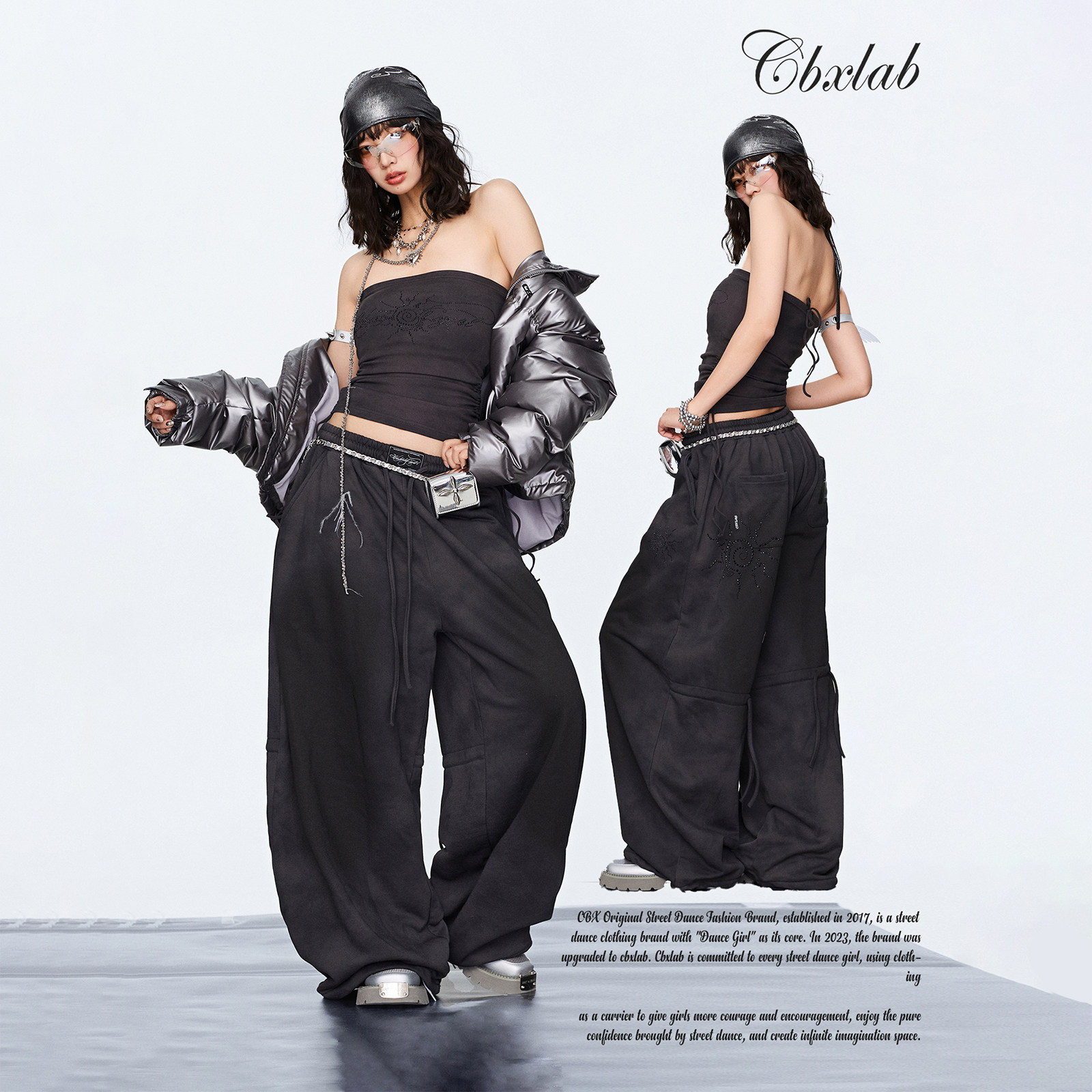 CBXLAB街舞潮牌复古游牧风辣妹套装 性感抽绳抹胸复古重工休闲裤 潮