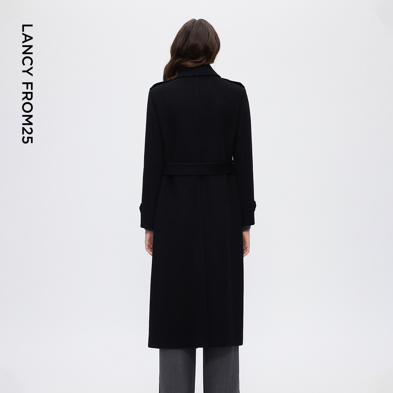 朗姿羊毛复古翻领挺阔毛呢外套优雅气质呢子大衣女2025年冬季 新款