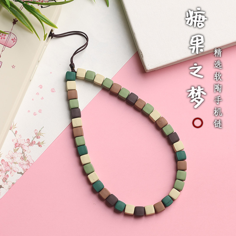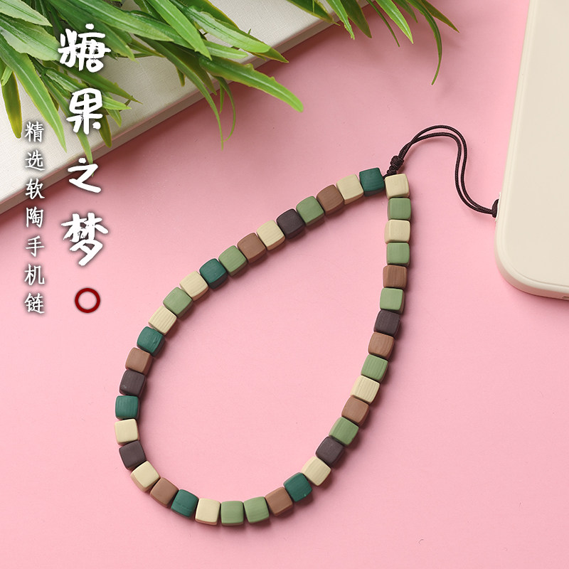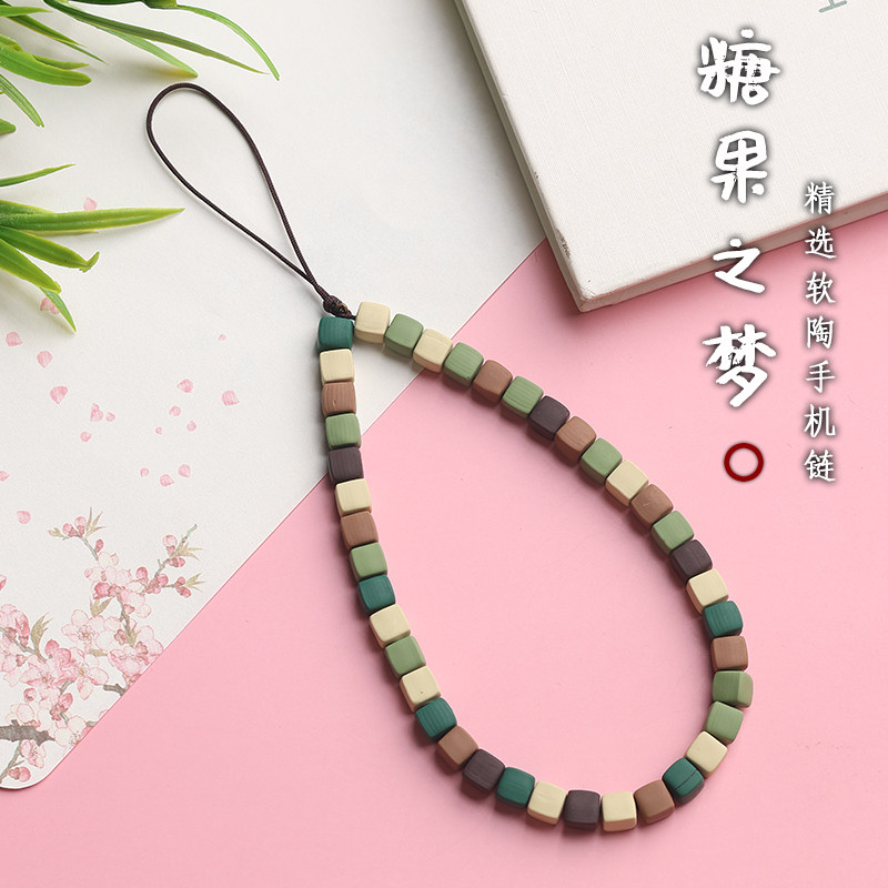 软陶方块手机链挂件女可爱手腕绳钥匙扣吊坠指环扣手机绳防丢挂饰