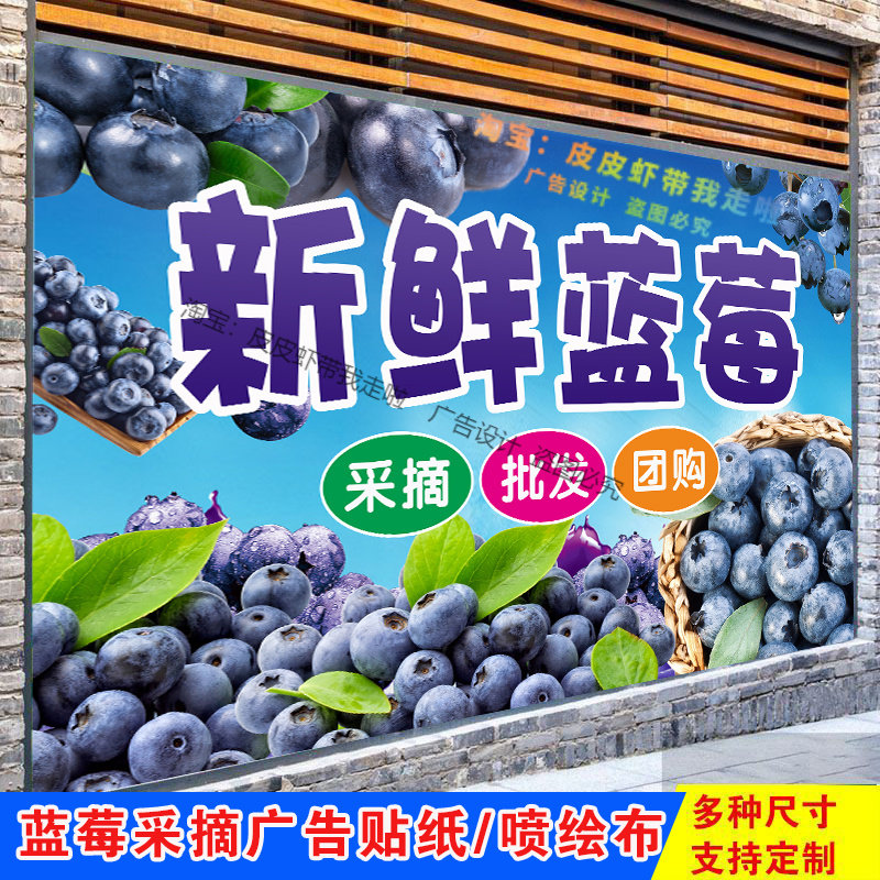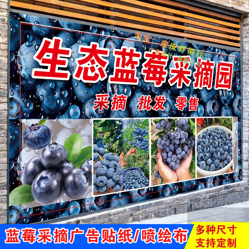 蓝莓采摘园广告新鲜蓝莓采摘海报定制果园采摘喷绘布海报贴纸自粘