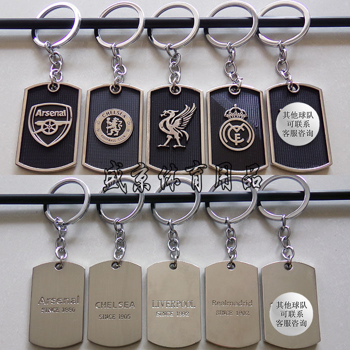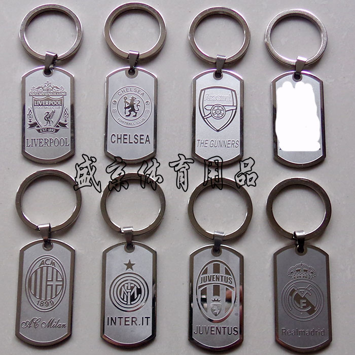 不锈钢挂扣球队徽钥匙扣梅西军牌巴萨钥匙牌队标挂件球迷项链挂饰