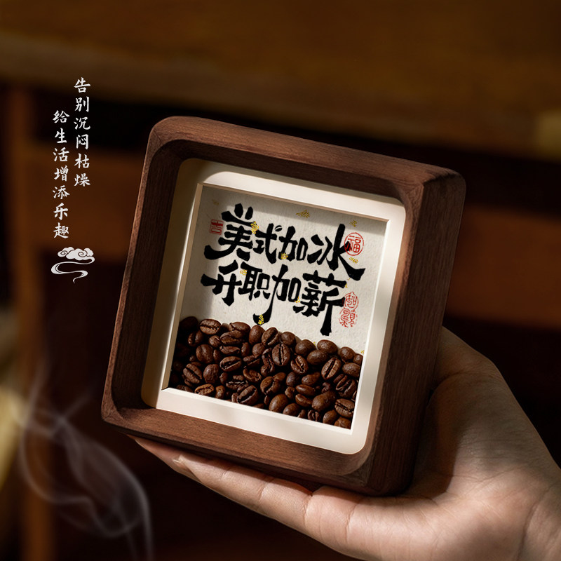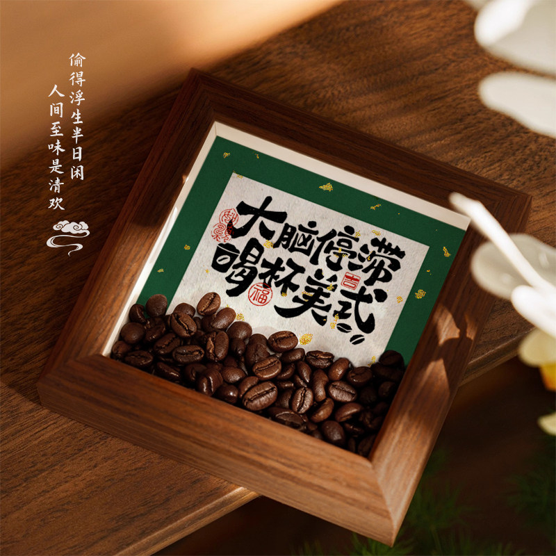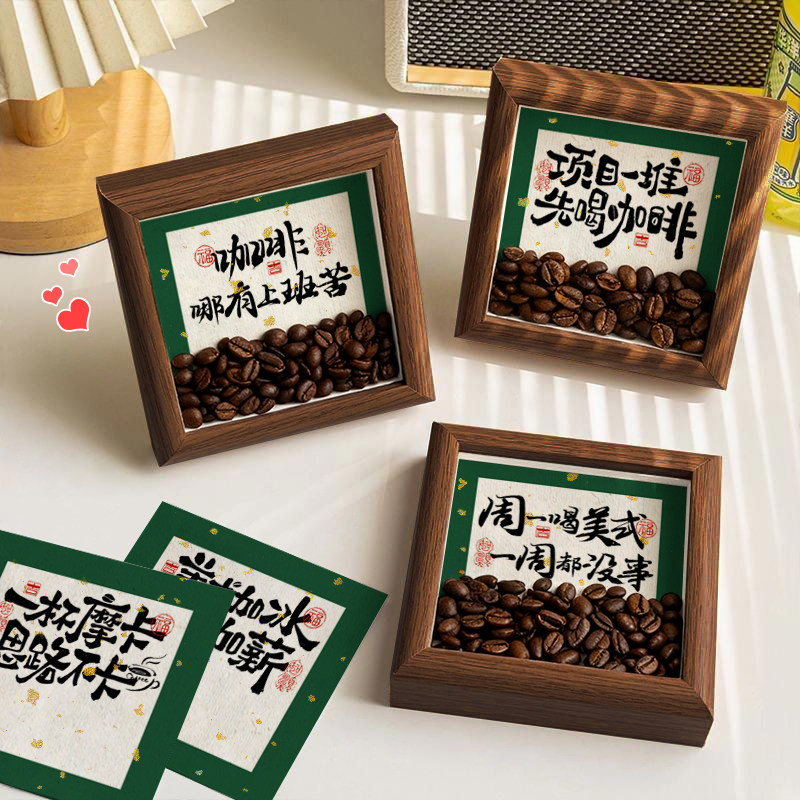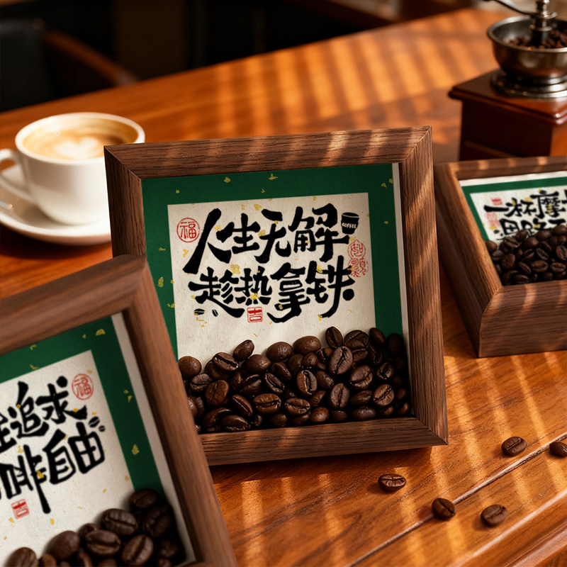 咖啡豆相框摆件工位摆台中空客厅咖啡店创意家居装 饰品桌面玄关