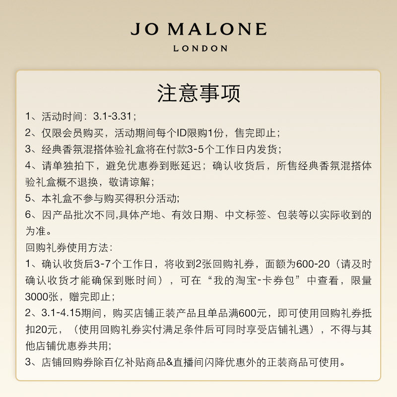 店铺掌柜:JoMaloneLondon祖玛珑官方旗舰店