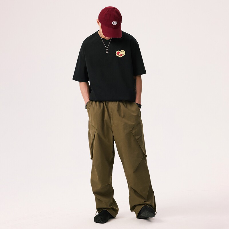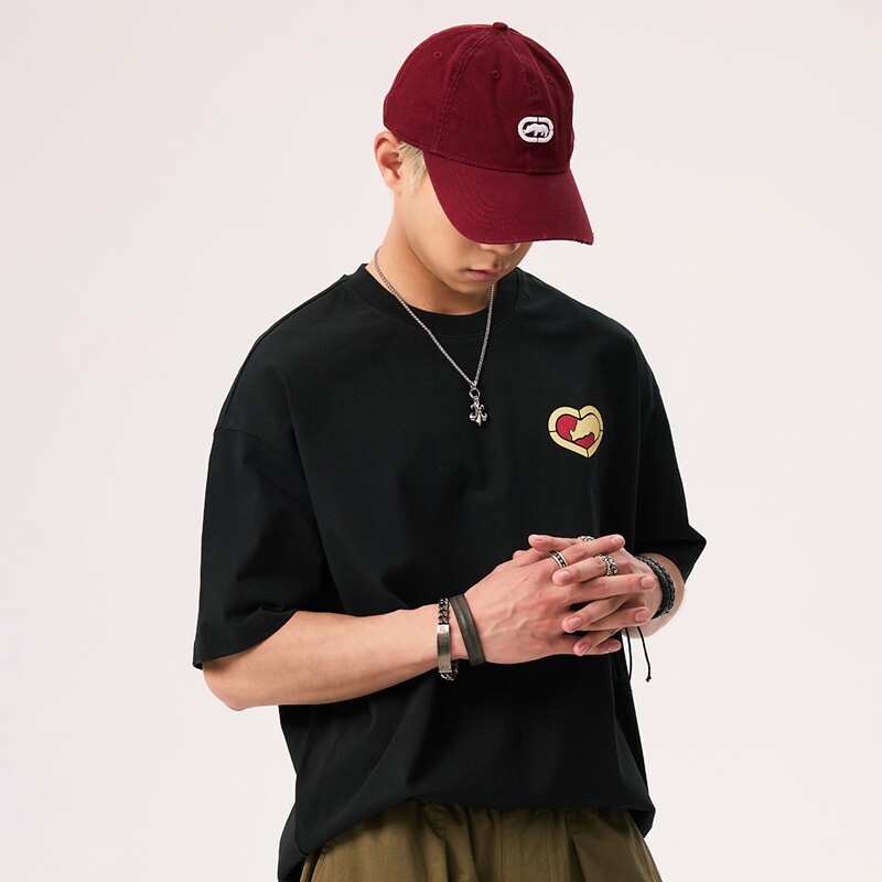 青少年印花上衣 t恤男女2025新款 ecko红犀牛 黑色凉感全棉情侣短袖