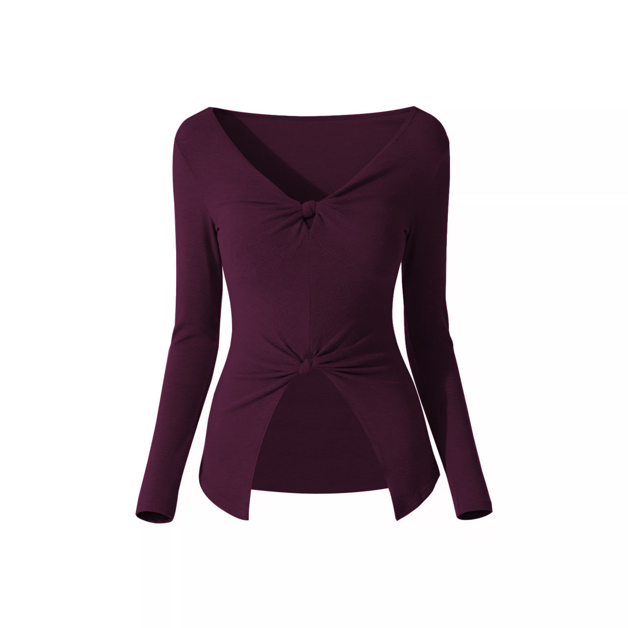 跑步运动T恤速干衣健身普拉提上衣罩衫 V领瑜伽服长袖 女双扭结修身