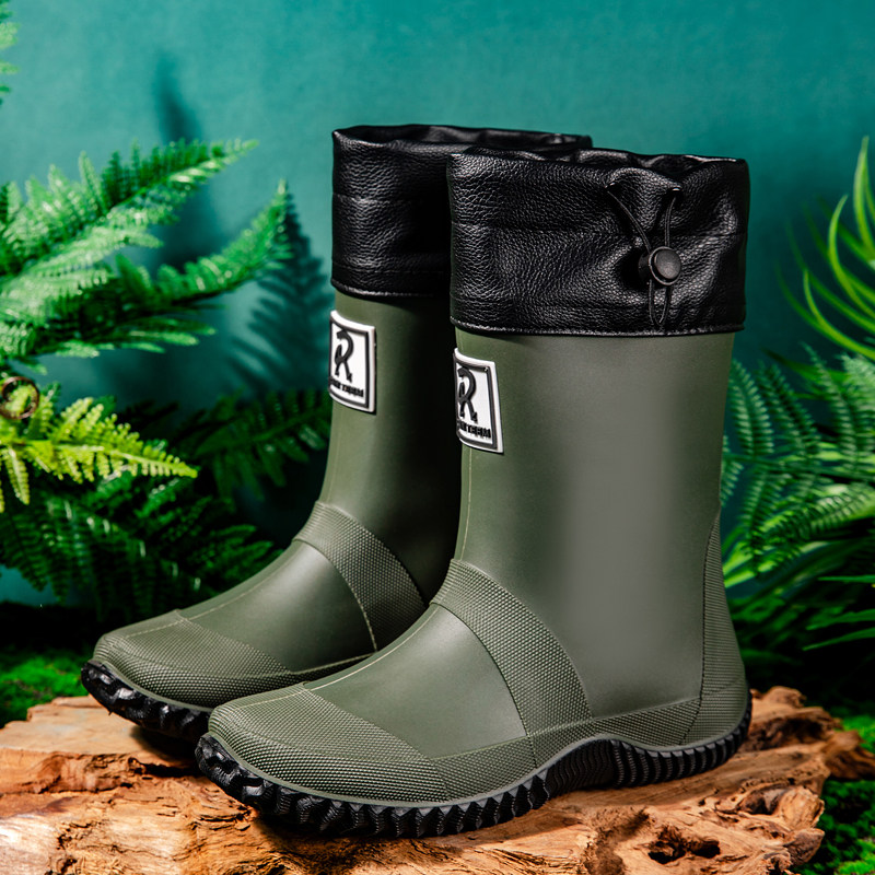 中筒防滑防水鞋 雨鞋 外卖跑腿水靴雨靴厚底工地耐磨轻便 男士 加大码