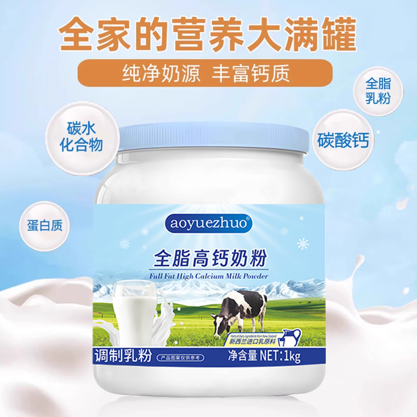 奶粉新西兰全脂高钙奶粉中老年无蔗糖青少年学生营养共享牛奶粉