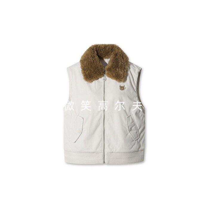 WAAC毛绒翻领高尔夫球服女士防寒保暖马甲 韩国代购 2025冬季 新款