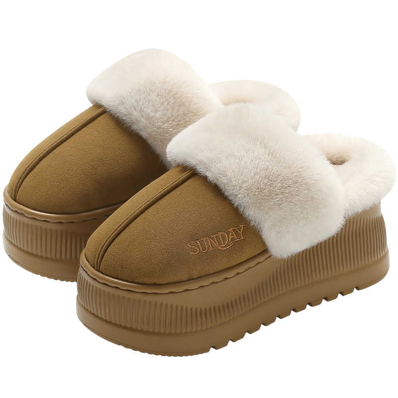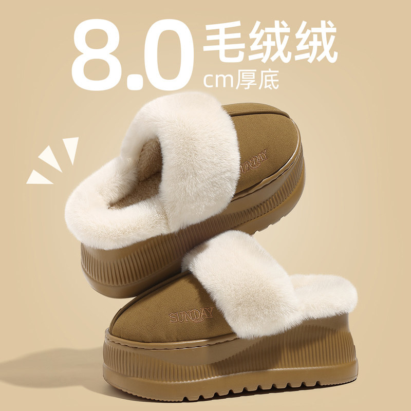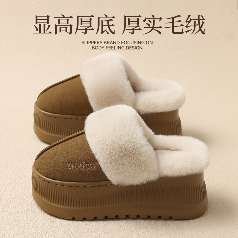 室内外穿防滑加绒保暖毛毛拖鞋 2025新款 女冬季 勃肯厚底增高棉拖鞋