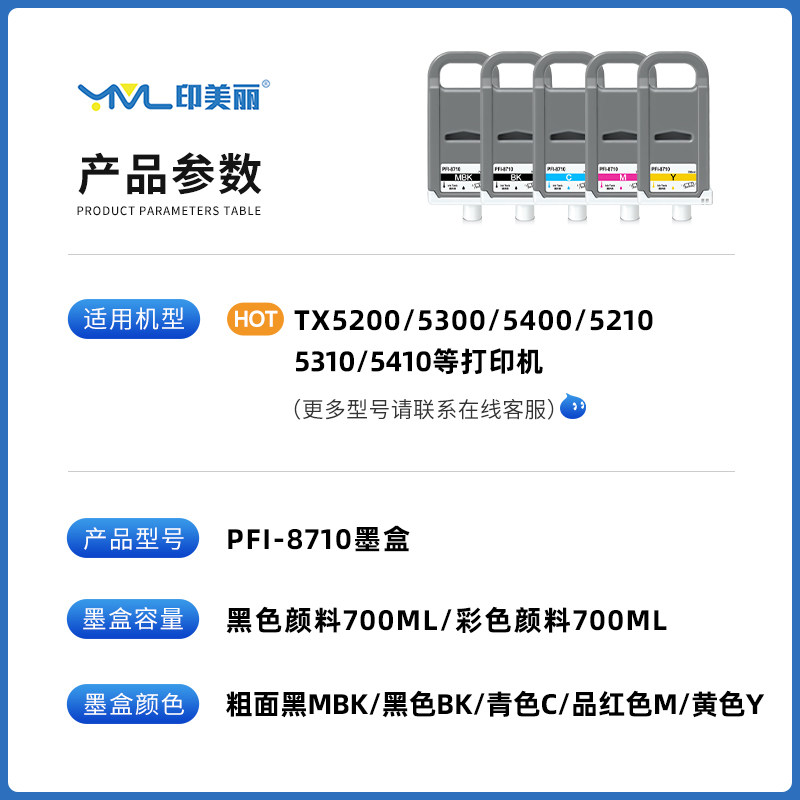 8710五色专用绘图仪墨水盒非原装 适用Canon佳能tx5300墨盒tx5400 5200宽幅打印机PFI 5410黑彩色5210 tx5310