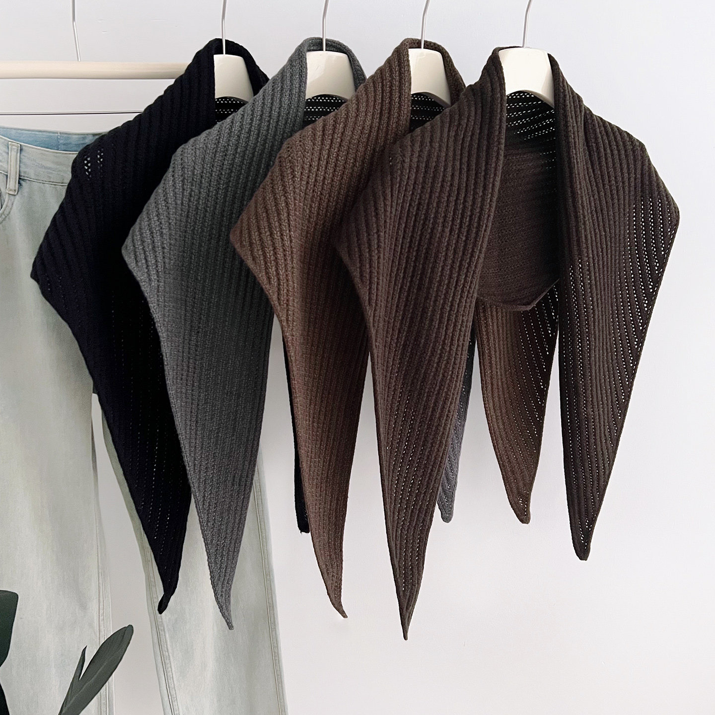 韩版 保暖围巾披肩百搭洋气时髦多功能围脖 纯色针织三角巾女秋冬季