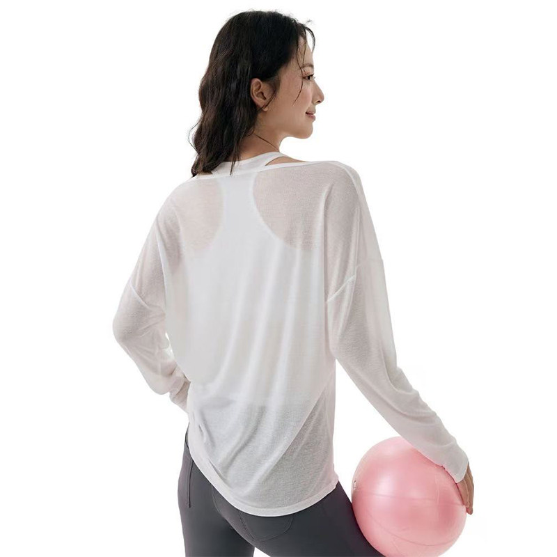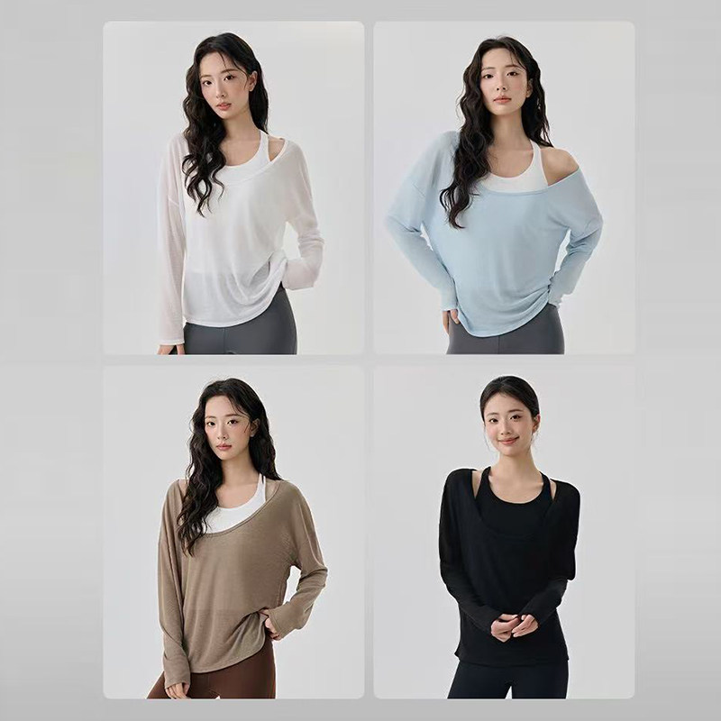 性感瑜伽罩衫 外穿带胸垫美背 高级感叠穿两件套透气普拉提健身长袖