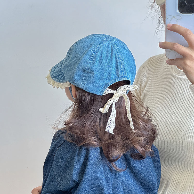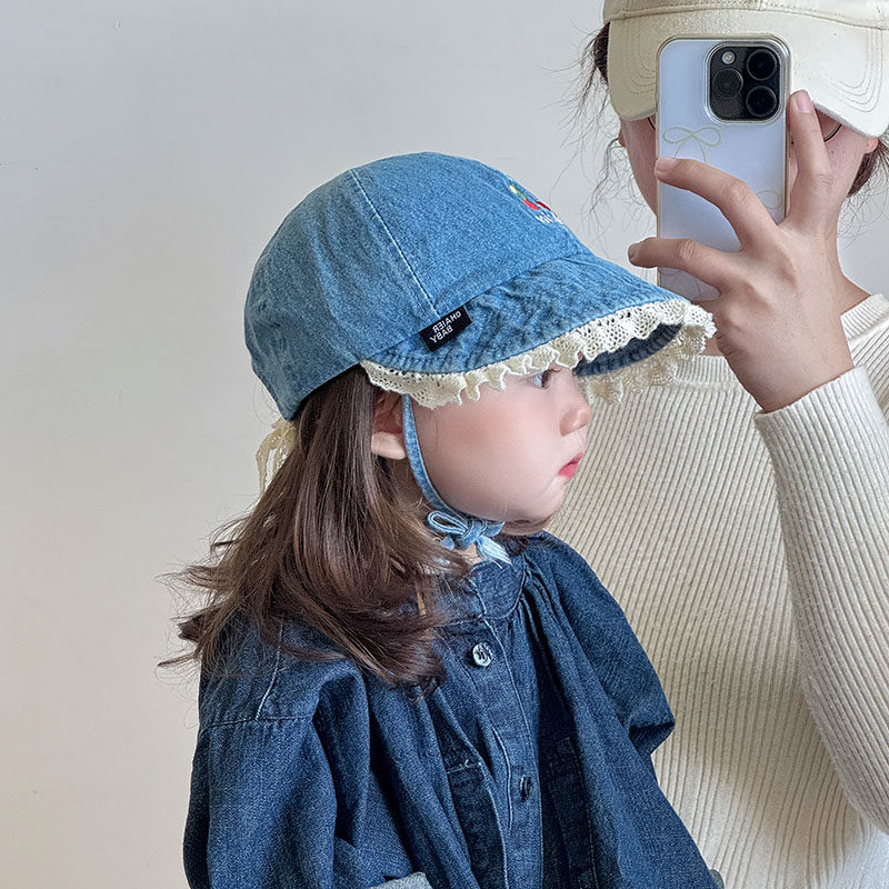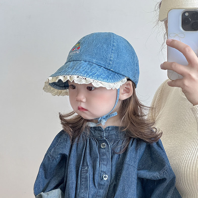 ins儿童帽子春秋季 大帽檐遮阳防风鸭舌帽女宝宝水洗牛仔棒球帽冬