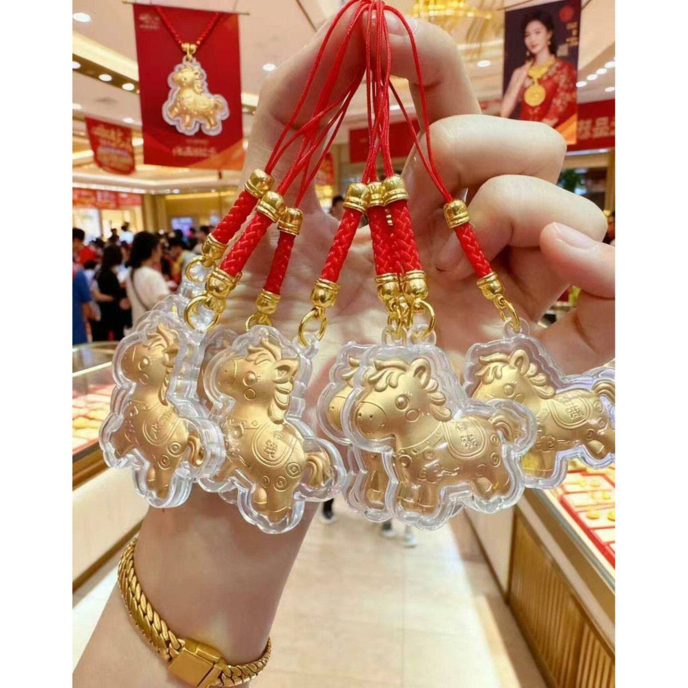 水贝马年999黄金手机挂绳团购新年情人节礼物足金包包挂件钥匙扣