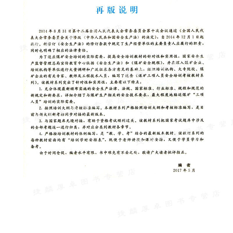 煤矿三项人员培训教材 煤矿主要负责人安全培训考核教材 第三版 商品标签: 第三版 发布时间:2026年03月16日 市 场 价:27.84 元 折 扣 价:27.84 元 所 在 地:北京 店铺掌柜:捷麟厚卓图书专营店 去购买>> 下架了的话点我重新搜索 本站来源:淘宝(www.xiuda.net)购物与天猫(www.tianmaocn.com)是一个知名的电商平台,淘宝同时您也可以访问(www.taobwg.com)来发现更多精彩的购物选择。