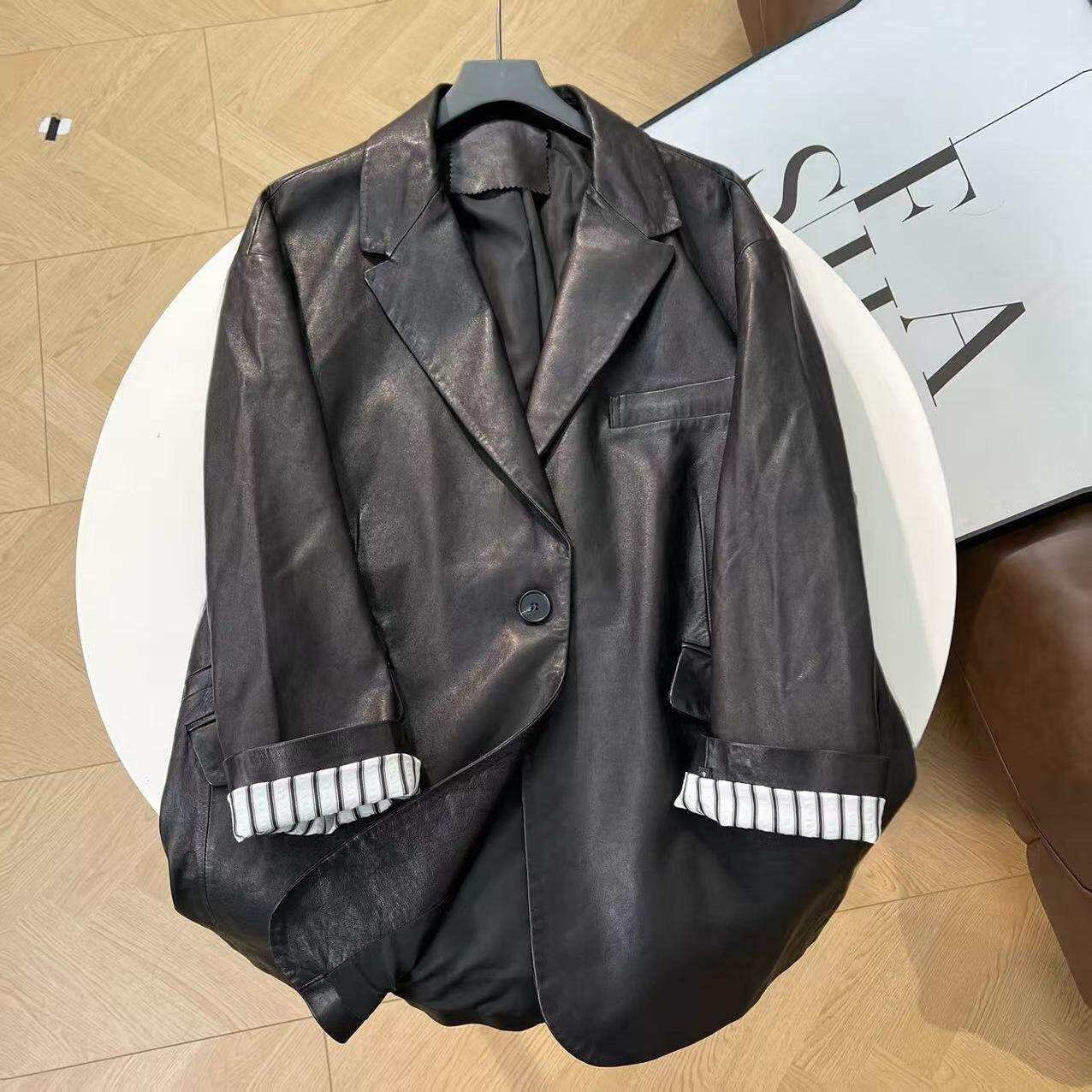 新款 春季 长77 皮衣25005H 美林姐妹