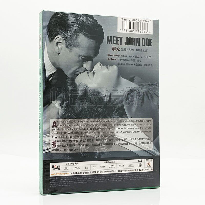 约翰·多伊 Meet DVD碟片 电影 加里库柏 盒装 群众 Doe 正版 John