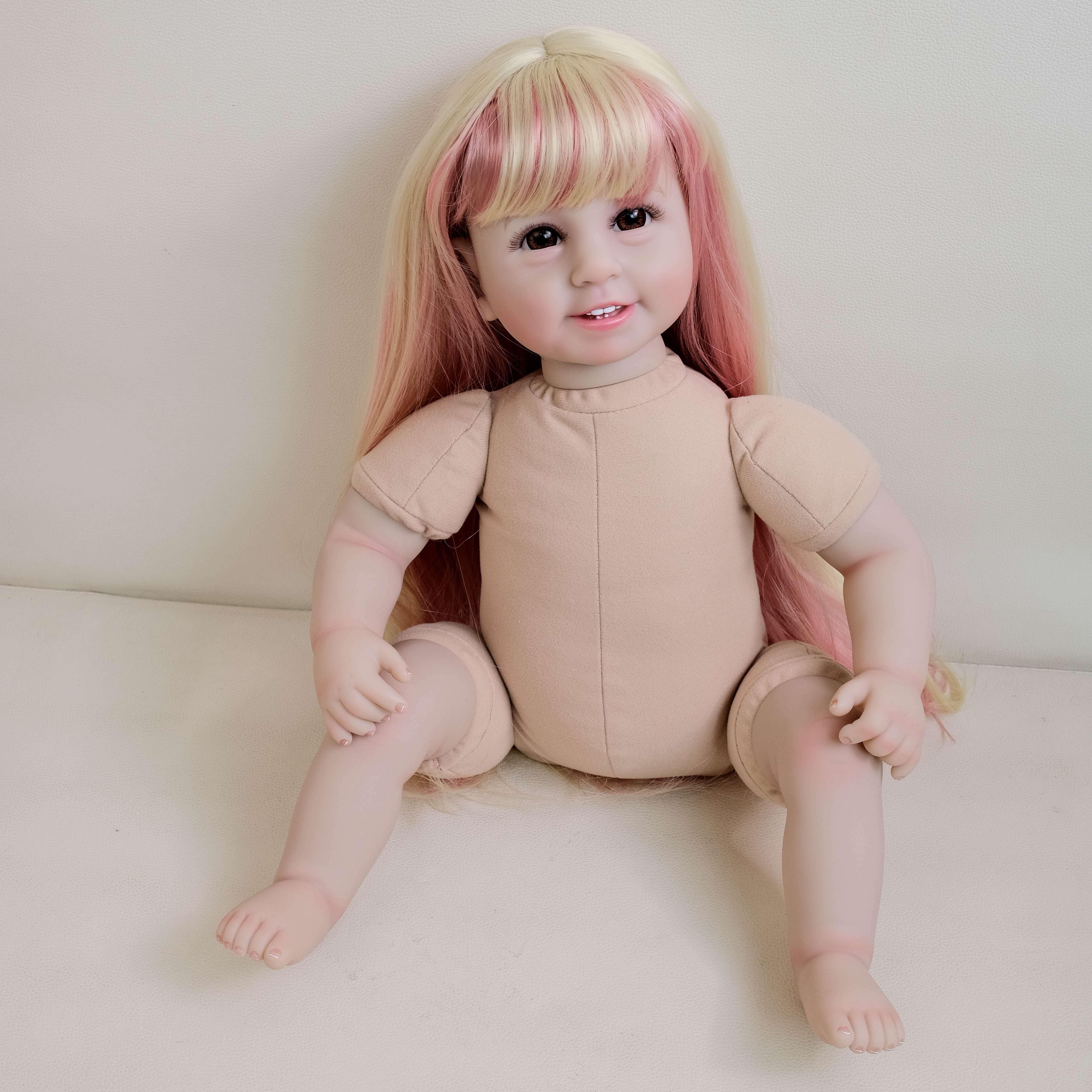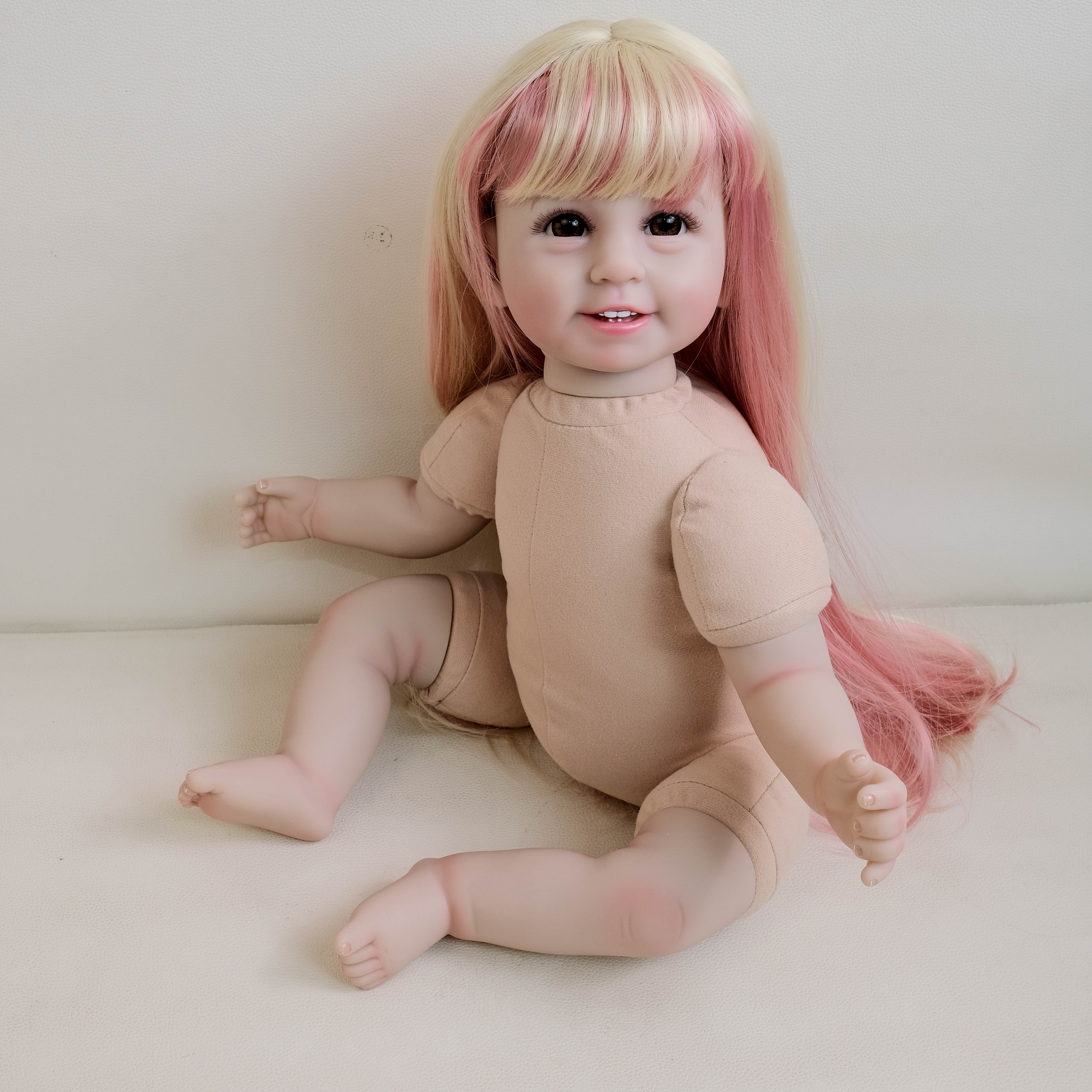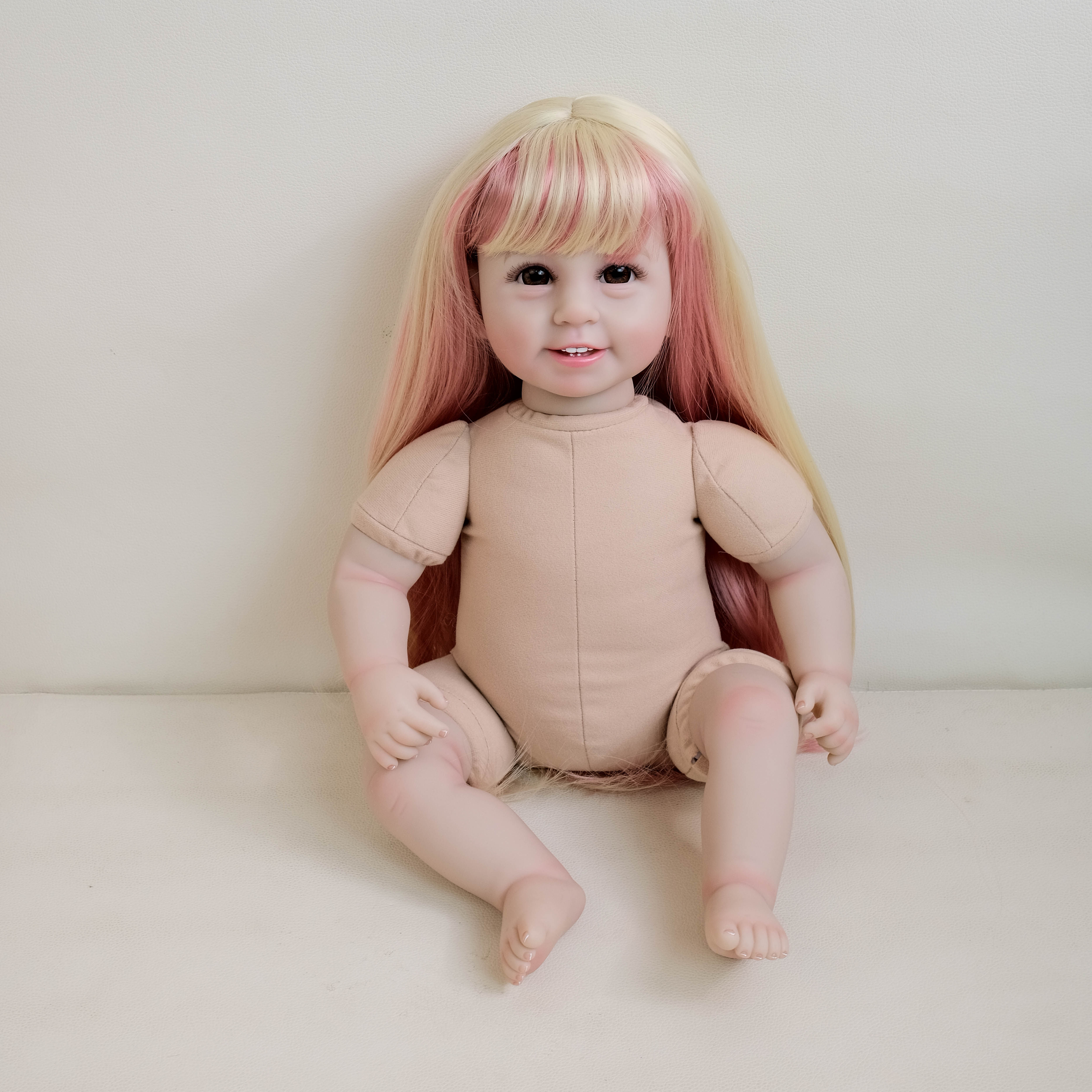 22寸新款 六颗牙仿真小女孩发套裸娃仿真娃娃衣服可以自由搭配送礼
