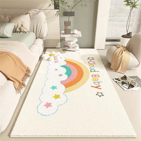 彩虹仿羊绒卧室床边可爱长条地毯家用客厅茶几毯儿童房榻榻米地