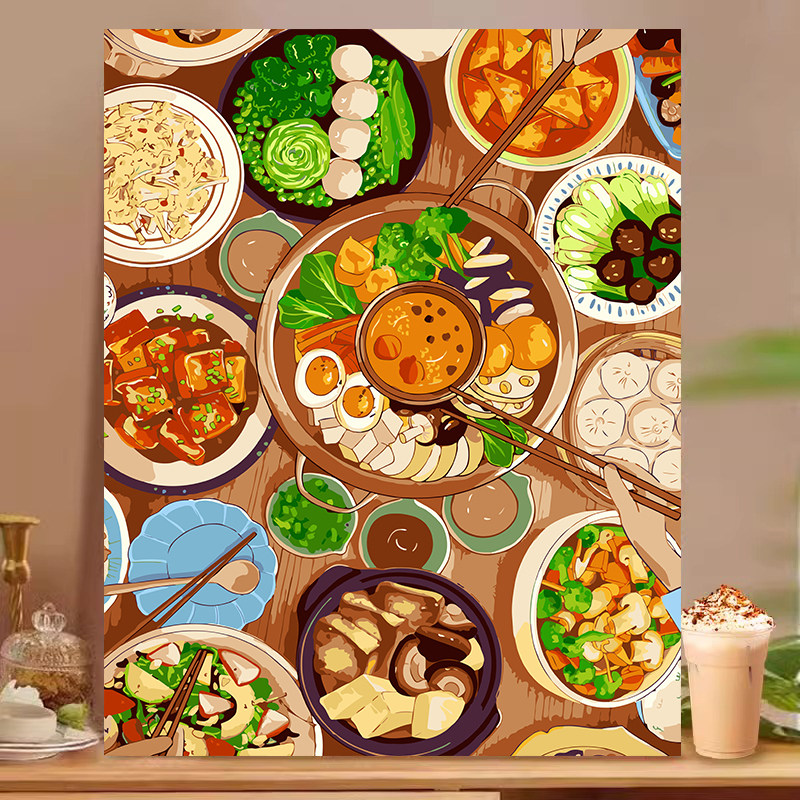 美食下午茶数字油画diy填充餐厅挂画手工油彩涂色高级装 饰宝藏湾
