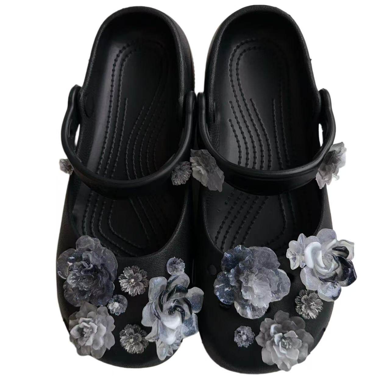 花小众可拆卸DIY装 扣树脂立体鞋 饰配件 鞋 水墨晕染渐变花朵洞洞鞋