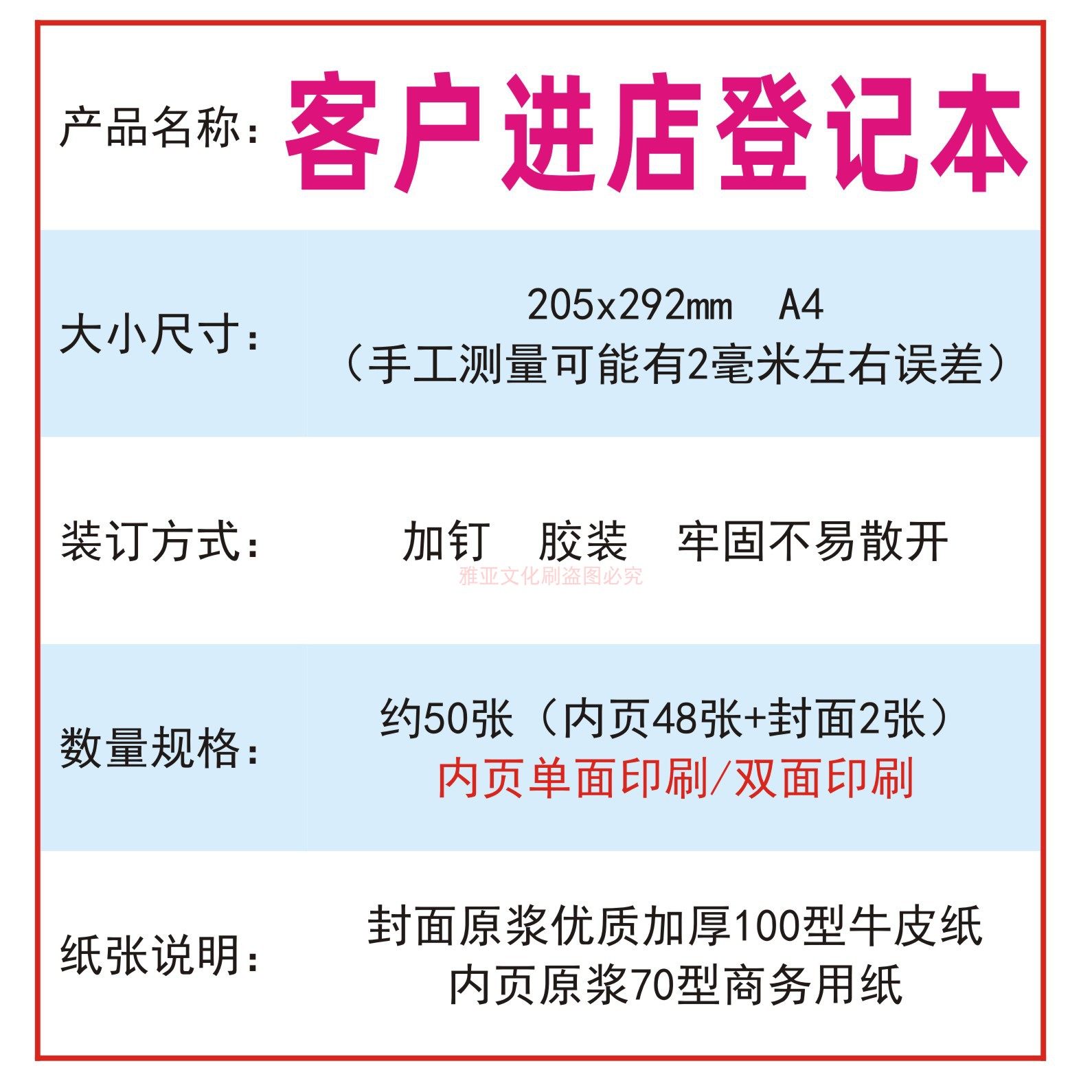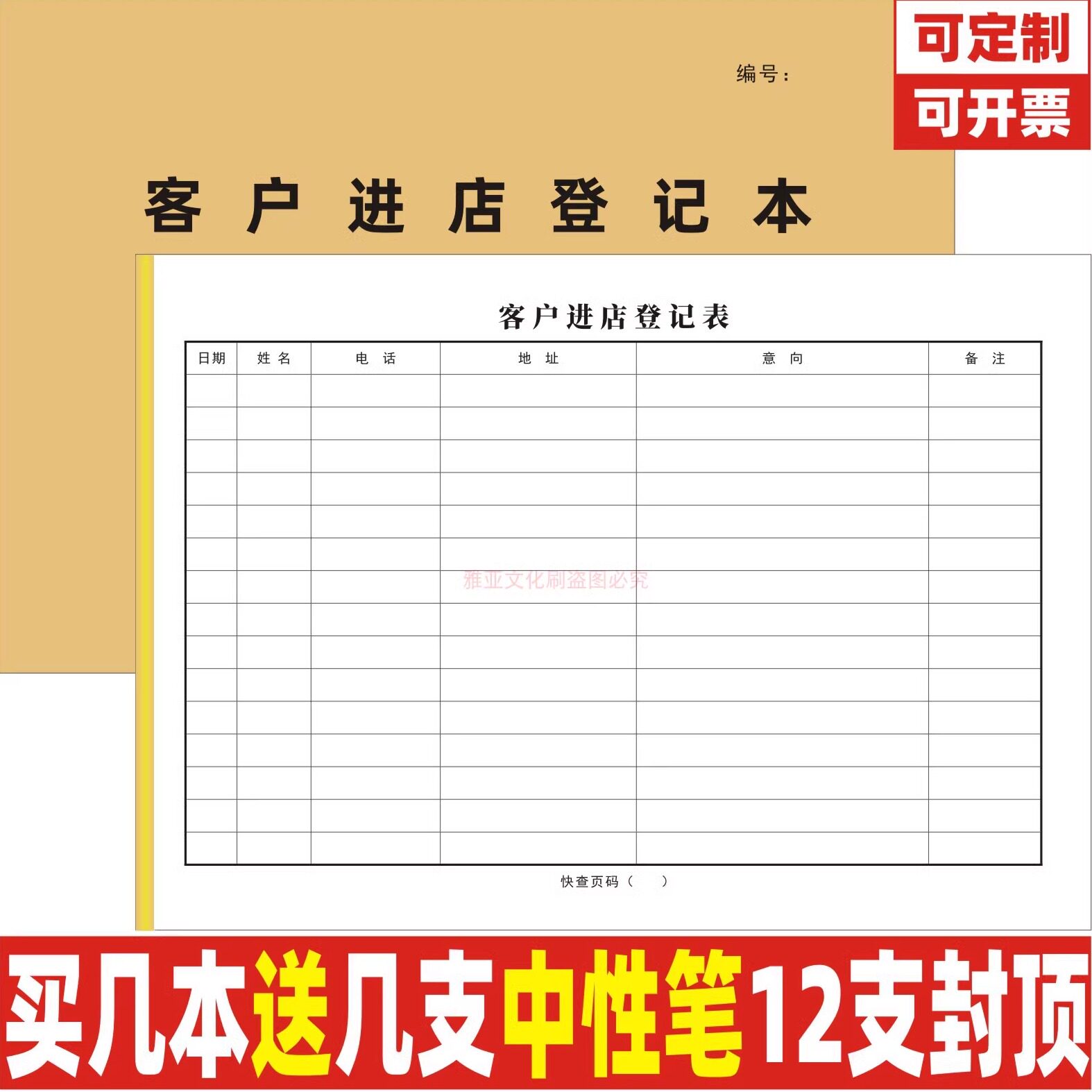 客户进店登记本建材建筑装 修定制窗帘磁砖客户来访意向登记簿定制
