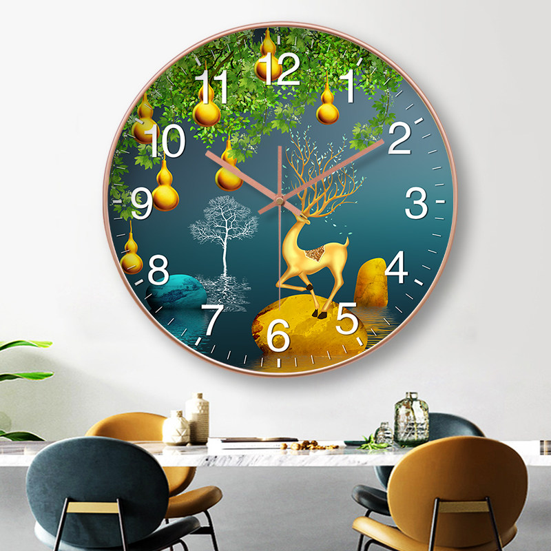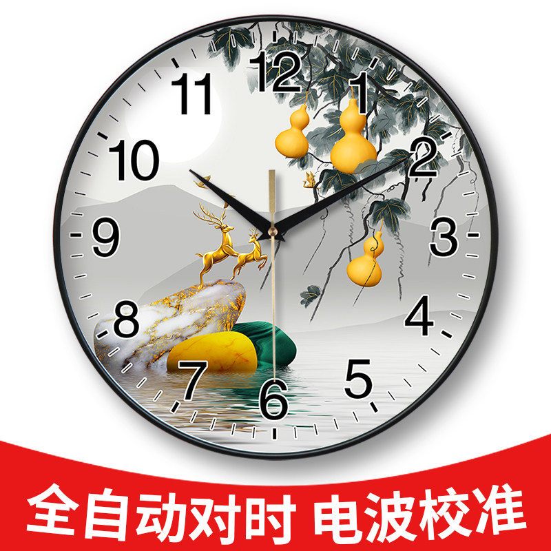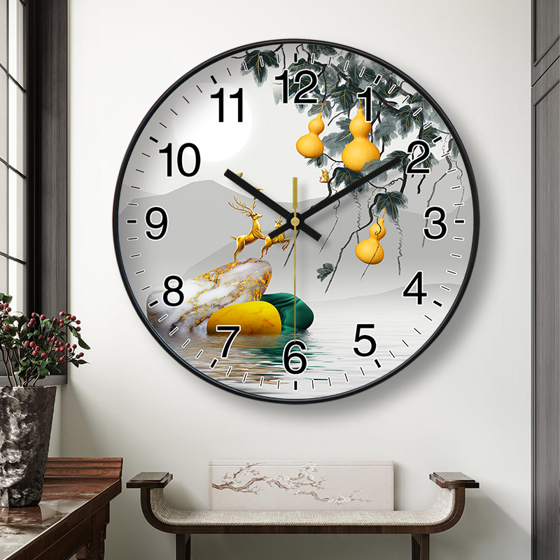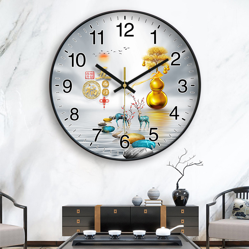 挂钟钟表简约家用客厅装 饰画福禄双全寓意好免打孔时钟挂表石英钟