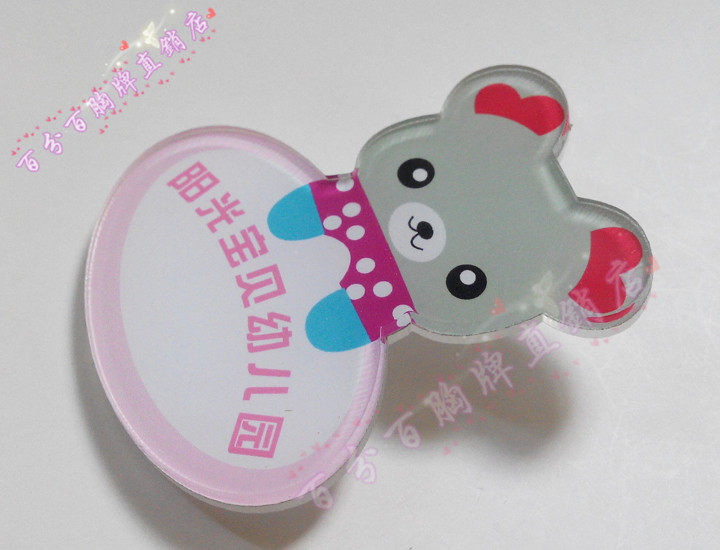 幼儿园小朋友可爱姓名胸牌 亚克力徽章工牌定做 卡通动物姓名胸卡