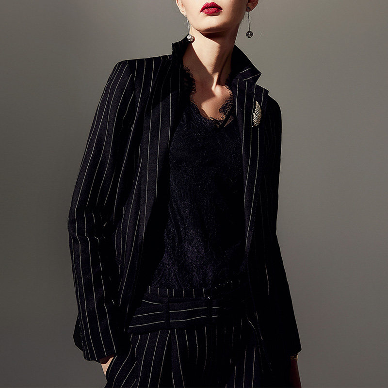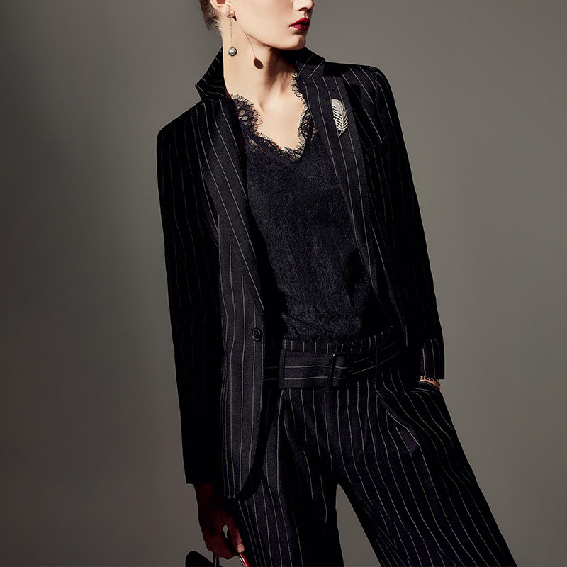 时尚 气质职业装 正装 颈袖 套装 新款 条纹小西装 女休闲 添香秋装