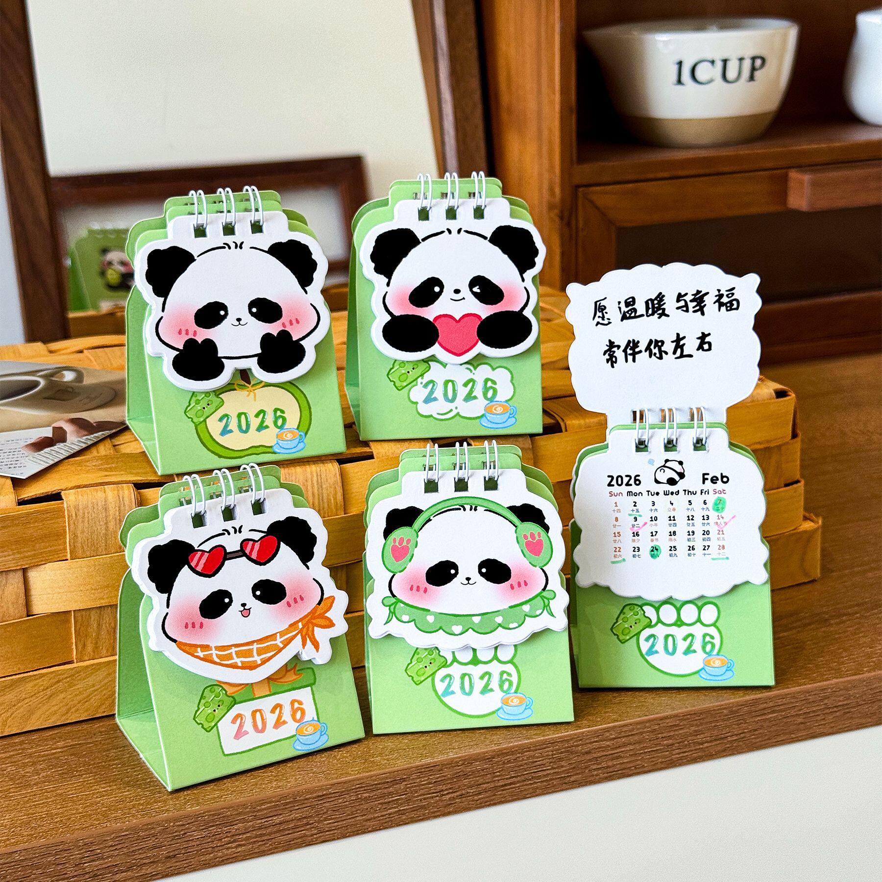 2026年可爱熊猫台历桌面日历打卡计划本卡通迷你豆豆小台历摆件